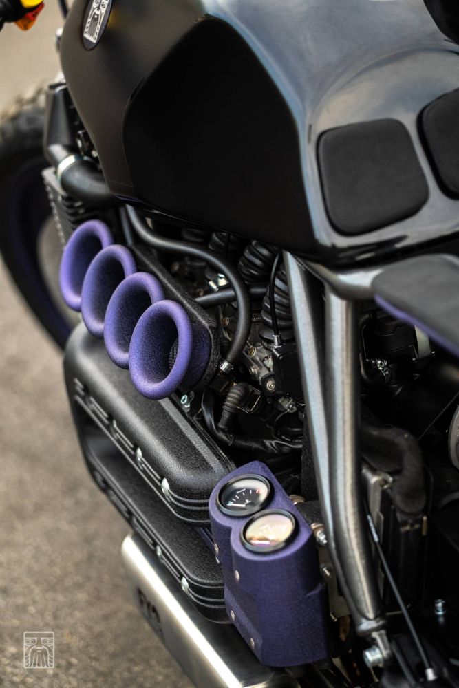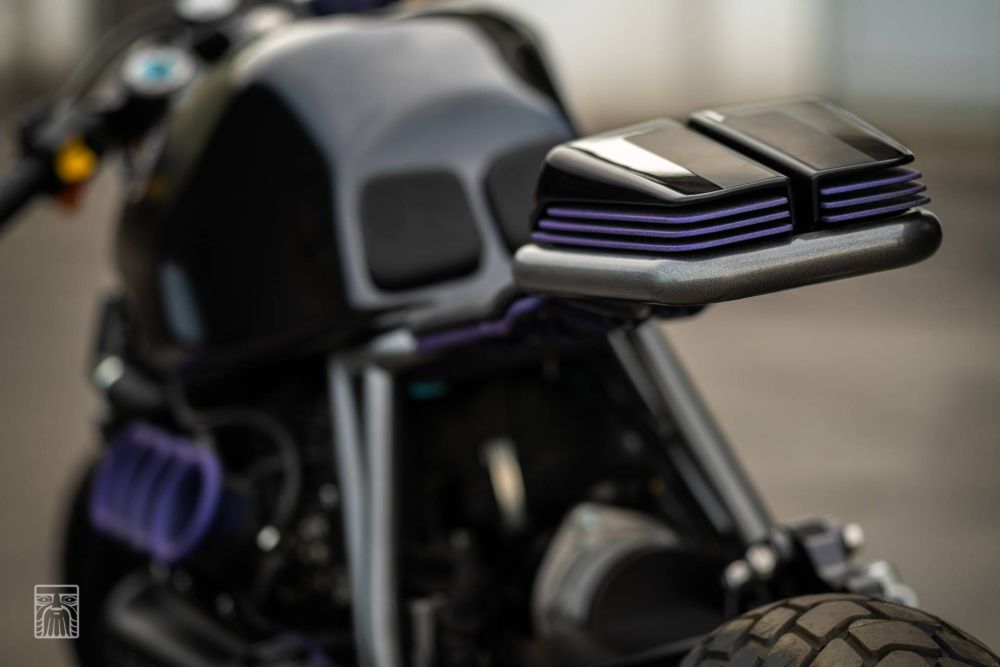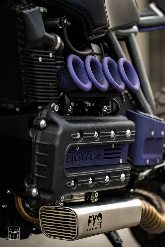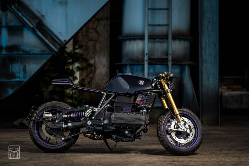 KILLER K: BMW K1100 by Incerum Customs. You have to hand it to BMW’s motorcycle division, they just don’t do things like the rest of the pack and have always done engineering their own way. From supercharged twin-cam engines in the ’30s to hulking big straight-six transverse-mounted donks on their modern tourers, they can’t help but do things a little differently. In the custom world their most ‘conventional’ bikes still feature a unique boxer twin, but hot on the heels of the R series bikes of late, comes the weird and wonderful flying brick. And few have been built as brilliantly as Incerum Customs’ latest K-Bike creation from Croatia.Having been on the scene for the past decade, Incerum have built themselves a reputation for ultra-clean designs. But they don’t just play it safe, as lead man Antonio Ferhatović also has a flair for the dramatic and uses bold colours to help show off his handy work. His most recent build, this BMW K1100 LT, is perhaps the most understated work he’s done in a while, but that purple just catches the eye from every angle and there are a host of clever touches to keep the owner entertained.All of which is well and good, but the bike itself has to perform perfectly in every single way for Antonio to be happy and this bike is no exception. Starting with the stock motorcycle it was stripped down till the last washer was left spinning on the floor and a plan of attack was hatched. Knowing he wanted to go with a unique subframe and mono-shock conversion, Antonio started drawing up the design. The K bikes are no lightweight machines, so to ensure there was more than enough rigidity, the new subframe features a twin-centre post construction.Even the rear hoop comes in for some extra thought before the new steel tube structure was coated in a hard-wearing dark silver. To get the bike rolling the back of the machine was to stay the focus, and parts from a BMW K1200RS, including the wheel, were plucked and give that stunning open look on the single-sided swingarm. The bike is then converted to a lay down horizontal shock setup, with a machined alloy support arm finished in black and a YSS shock to handle dampening duties. Here the first splash of purple is supplied with the spring finished in the crinkle-cut hue.The front end had to be a serious piece of kit to match and with the weight of the bike in mind, the over-engineered Ohlins forks and triple trees from an Aprilia RSV Mille were adapted to fit. It’s no simple bolt-on job, but not only do you get a high quality suspension but the radial Brembo brakes make for a hell of an addition too. The wheels were painted purple and then wrapped in Pirelli rubber. While up on the bars is a host of new components to ensure the rider is well catered for and then Antonio put together a set of custom rearsets to complete the controls.Moving to the bodywork and the factory fuel tank was modified to work with the new forks and a custom filler cap was welded into place. The tail unit begins the futuristic feel and beneath the twin bodywork sections are a trio of metal slats. It is a design element that is added to other areas of the bike, but in the rear and painted in purple, it gives the LED lights a sinister feel. The seat too is straight from the Sci-Fi realm, with the frame running down the middle and twin pads on the perimeter. “We custom made a glass container for the cooling liquid,” which is of course finished in purple. So too is the custom steel housing that fits over the coils and holds the temperature and fuel gauges. There are almost too many detailed pieces to mention, but study the bike long enough and to your delight, they keep appearing. One thing you can’t miss however is that thumping four-cylinder engine. And from the crinkle black paint to those triumphant purple velocity stacks and the state-of-the-art exhaust system with FYG muffler, it is truly a feast for the eyes.Did we mention that the stainless exhaust, that’s perfectly TIG welded, also vents to the front of the bike? It’s cool stuff. The wiring is something that Antonio takes great pride in and to match his custom made loom he chose parts from Motogadget and Kellermann to finish the job. Finally, the paint could be laid down and nothing goes with purple like black. But rather than a single look, both gloss and matte finishes were applied and a tyre mark graphic also graces the tank. Just like BMW, they do things outside the box at Incerum Customs, and for all its crazy creativity this K-bike creation is also one hell of a fast cruiser.