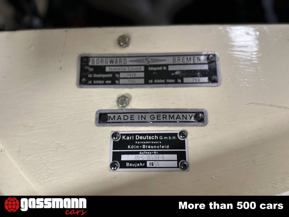 Die Karosseriefirma Deutsch in Köln war Spezialist für den Umbau eleganter Fahrzeuge zum Cabriolet. Ab 1955 produzierte Deutsch für den Bremer Hersteller Borgward hunderte Isabella-Cabrios in Serie sowie einige besonders exklusive Coupé-Cabrios dieses Typs (angenommen werden maximal 20 Stück bis 1961).
