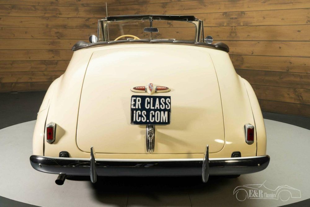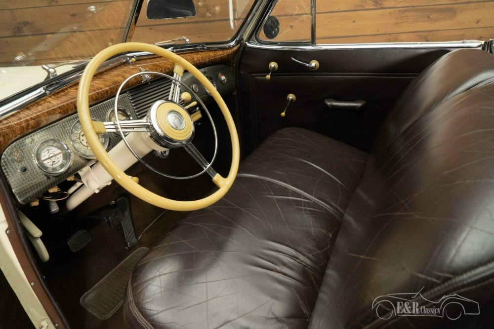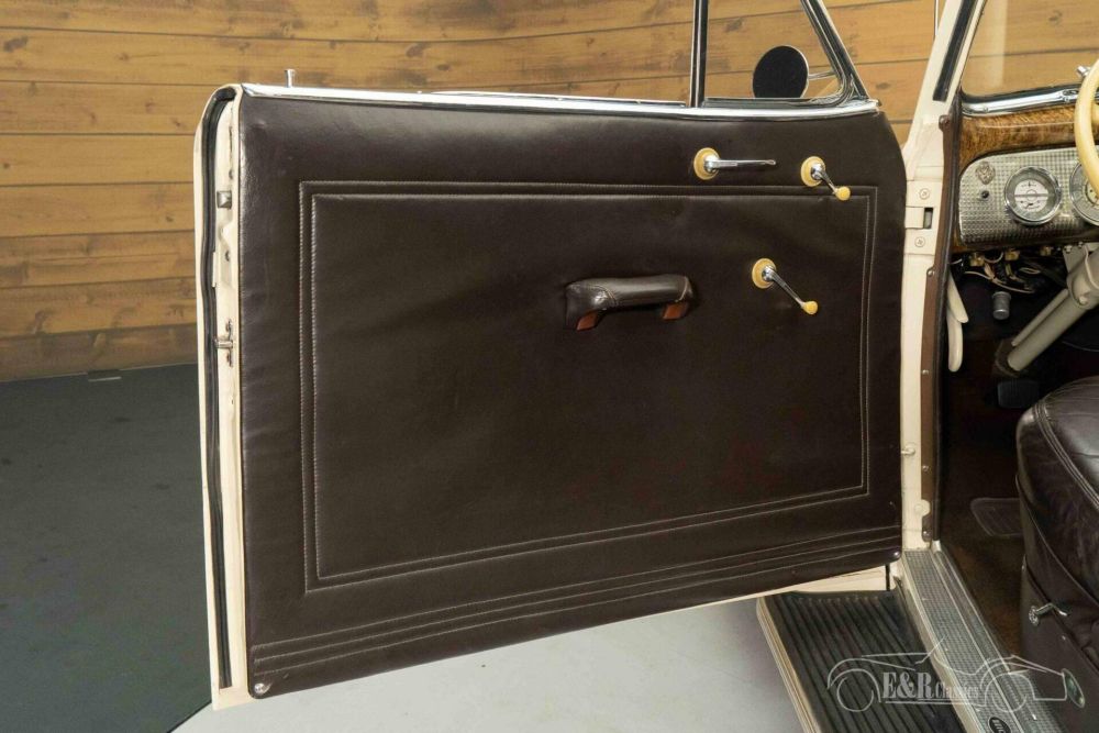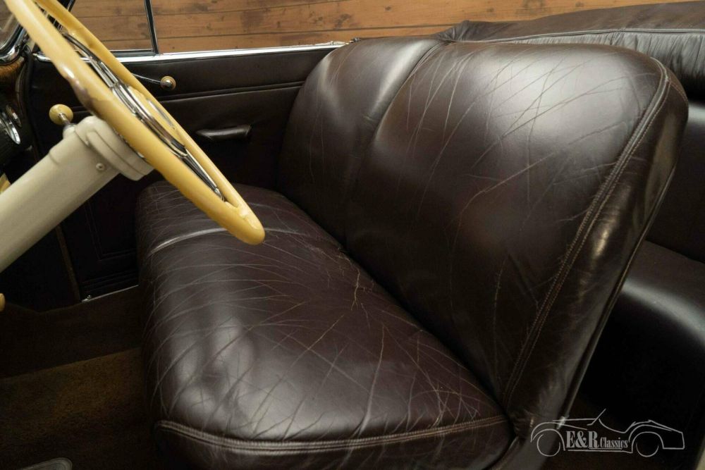 The Buick Eight Special that we offer for sale here is truly a sight to behold. It has a cream-coloured paintwork that looks great on the classic car and combines very nicely with the impressive chrome and white walls. The interior of the Buick is made of dark brown leather and has a beautiful wooden dashboard. The Buick is equipped with a beige-coloured soft top that makes it a beautiful whole.