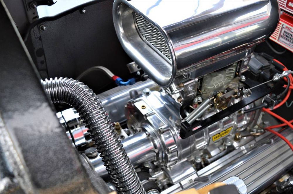 Das Herz dieses Hot Rod ist ein 327er V8 aus einer Corvette. Der Motor wurde vor 3 Jahren überholt und mit neuen Lagern, Kolben und Kolbenringen versehen. Bei der Überarbeitung wurde auch eine Custom Nockenwelle (Drehmoment orientiert), neue Stößel, neue Steuerkette und Räder sowie eine High-Volume Ölpumpe verbaut. Die Zylinderköpfe wurden ebenfalls serviciert.