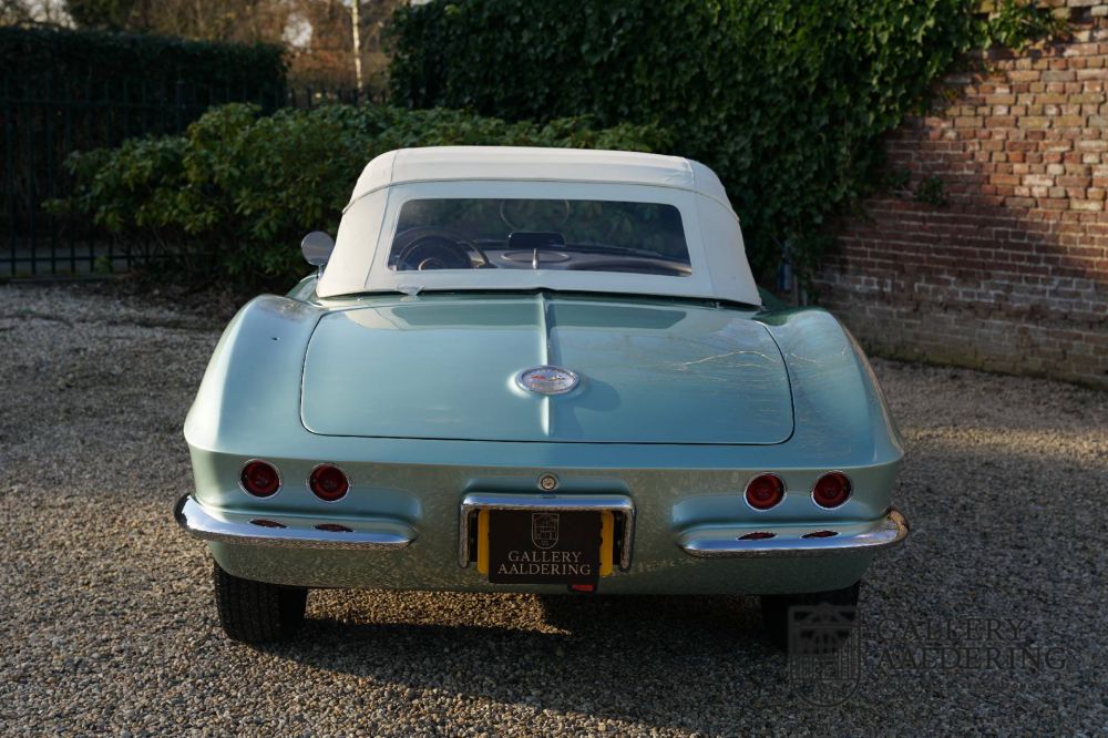 We bought the car in Santa Barbara, California in the States. The were a number of things that immediately drew our attention and made sure we added this one to our collection. First of all there is the condition to consider. Good care and the warm Californian climate has preserved this car from the ravages of bad weather. That meant this Corvette never needed to be restored and is in very original condition. That does not mean they scrimped on maintenance. The previous owner spent over$ 26.000 in maintenance with one invoice totalling over $ 15.400. Mechanically the car is in A-1 condition, which becomes immediately obvious once behind the wheel. The brakes work fine and the car holds the road really well. The 283 Ci (4.6 litre) engine has been fitted with a Rochester fuel injector, giving her 315 Ps. This was the top of the range C1 edition, her 315 PS, despite her 60 summers, still making this a seriously fast car. The engine is attached to the rare and very popular manual 4-speed gearbox. Especially the presence of fuel injection is rare. In 1961 Chevrolet produced 10,939 Corvettes of which only 1,462 had the top of the range engine. Other rarities include the heating system and the factory supplied am radio.