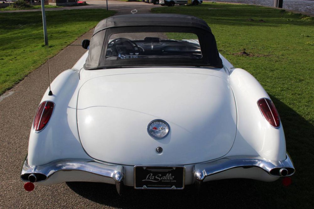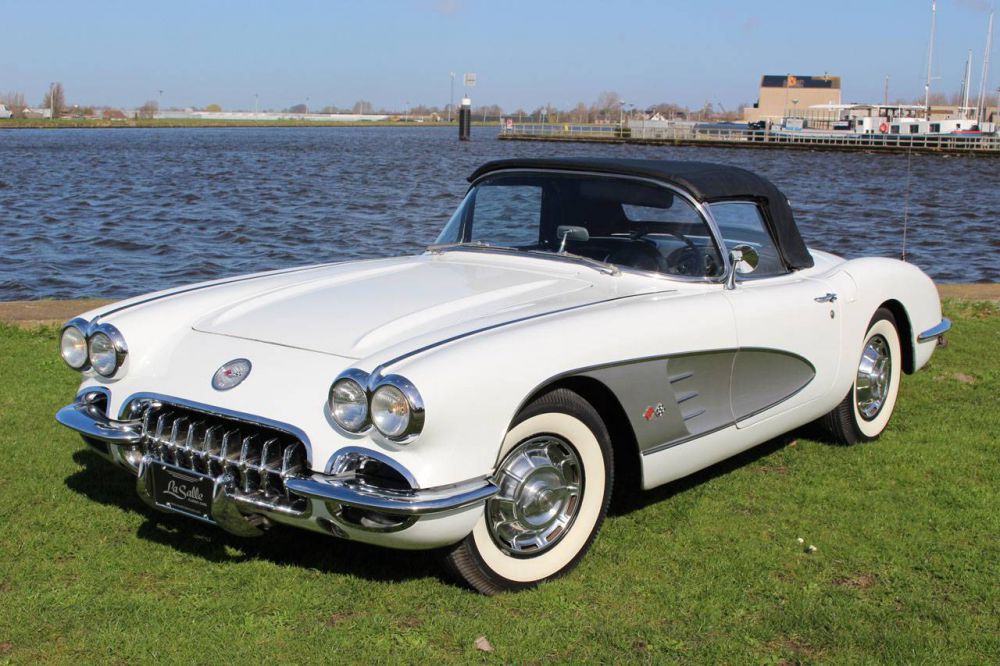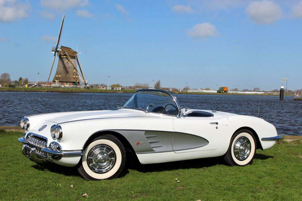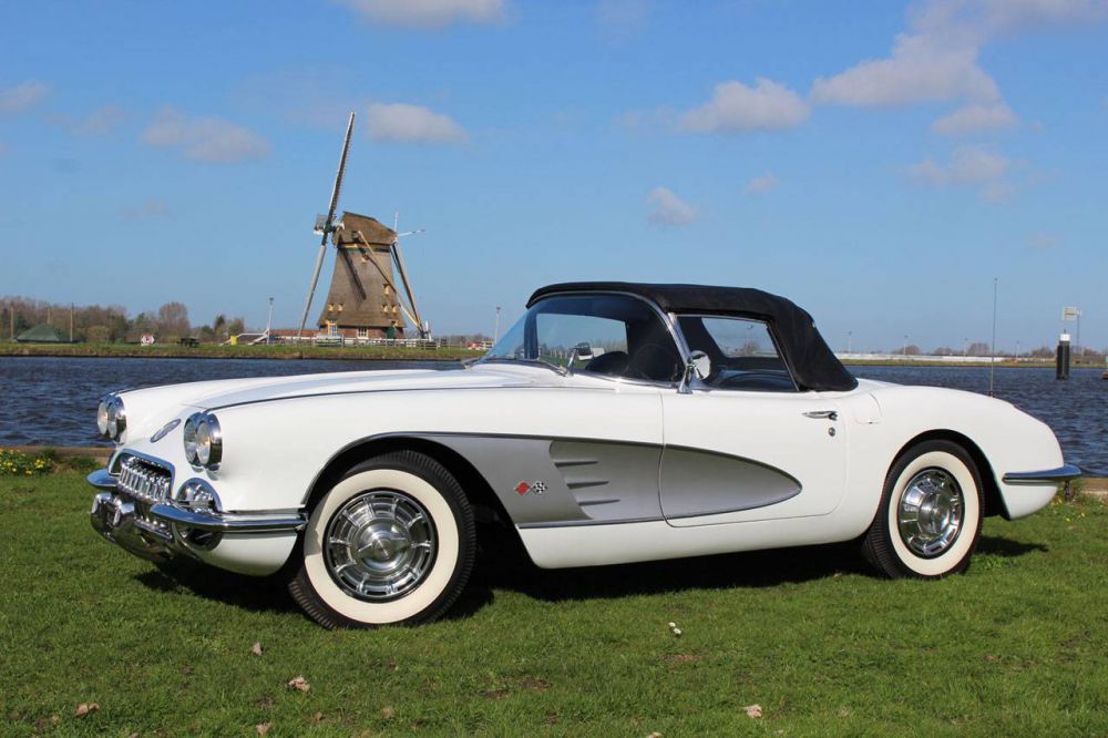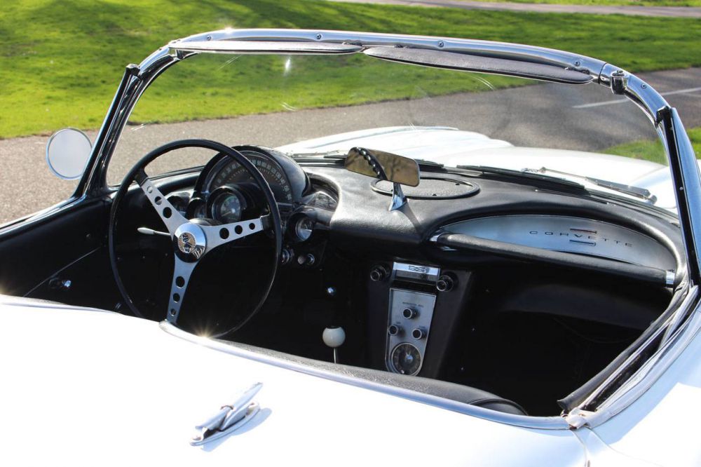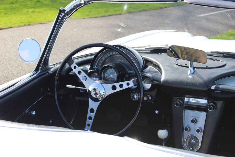 Beautiful C1 Corvette in white with silver coves. Equipped with the 283 cu.i. V8 and 4-speed gearbox (manual). Black interior and black soft top. This 1960 Corvette has been in the Netherlands for a long time and is well maintained. It concerns an older restoration, presents nicely but does have traces of use here and there. Engine runs excellent, an experience to drive! Dutch license plate.