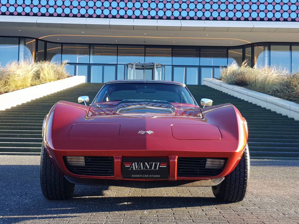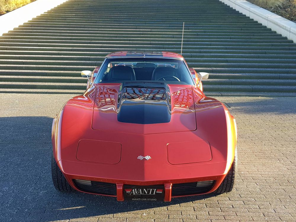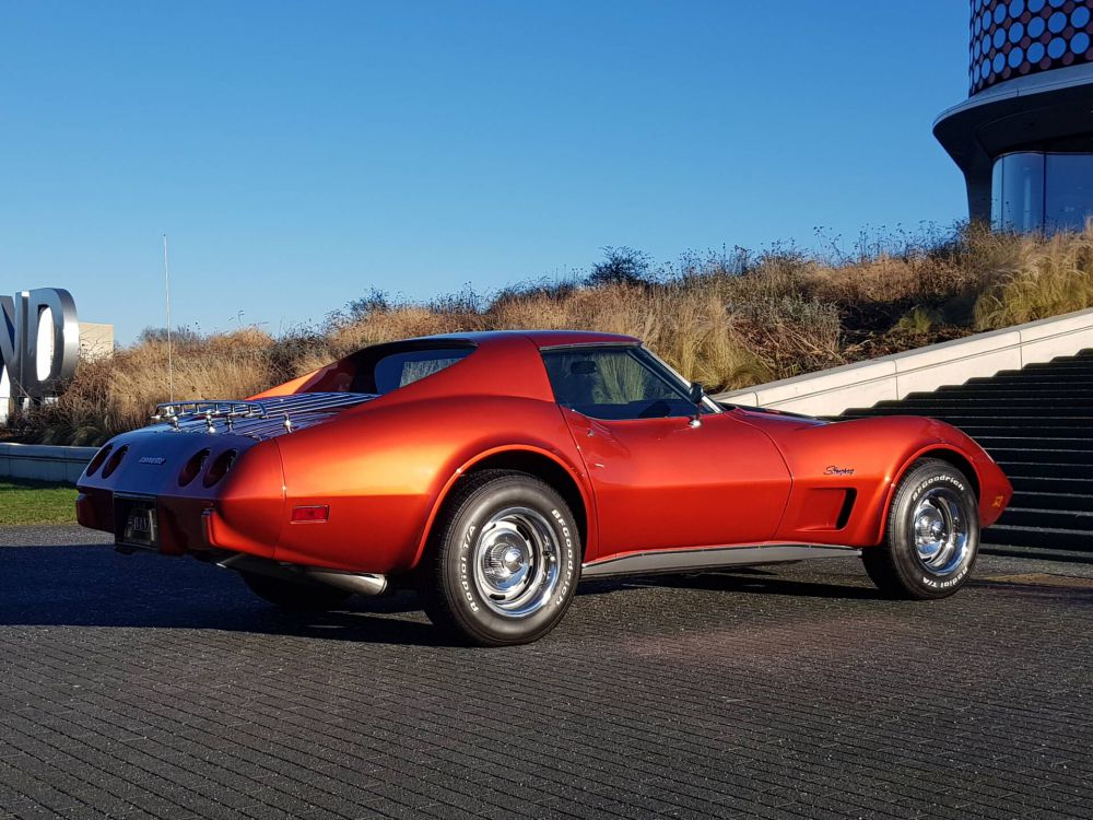 CORVETTE STINGRAY C3 COUPE V8 COMPLETELY RESTORED 406 SMALL BLOCK WITH 450 HP AUTOMATIC TRANSMISSION   Chevrolet Corvette Stingray C3 Coupe, V8, automatic, 6.6 liters, the original engine has been replaced by a 406 Small Block with 450 HP, 400 Cubic Inch, T-roof, built 02-1976, 65.406 miles. The color in Fresh Sunset Pearlescent Metallic with Danube Black stripes has a beautiful pearly sheen and changes color depending on the sunlight. Includes a paint sealant that preserves the beautiful high gloss. Totally restored and modernized, many new parts and completely new interior, black leather upholstery, 15 inch original chrome Rally rims with tire width 225/70R15. And much more !! TÜV inspection report from 24-10-2023, title and extensive photo report of the restoration, invoices and instructions for use are available. The Stingray has been used very little since the restoration and has only been driven in good weather. This very beautifully restored Corvette is in top condition.