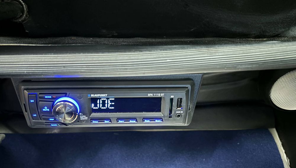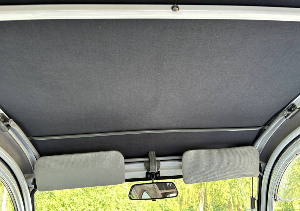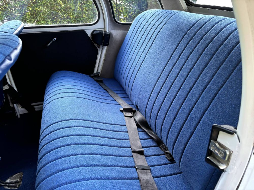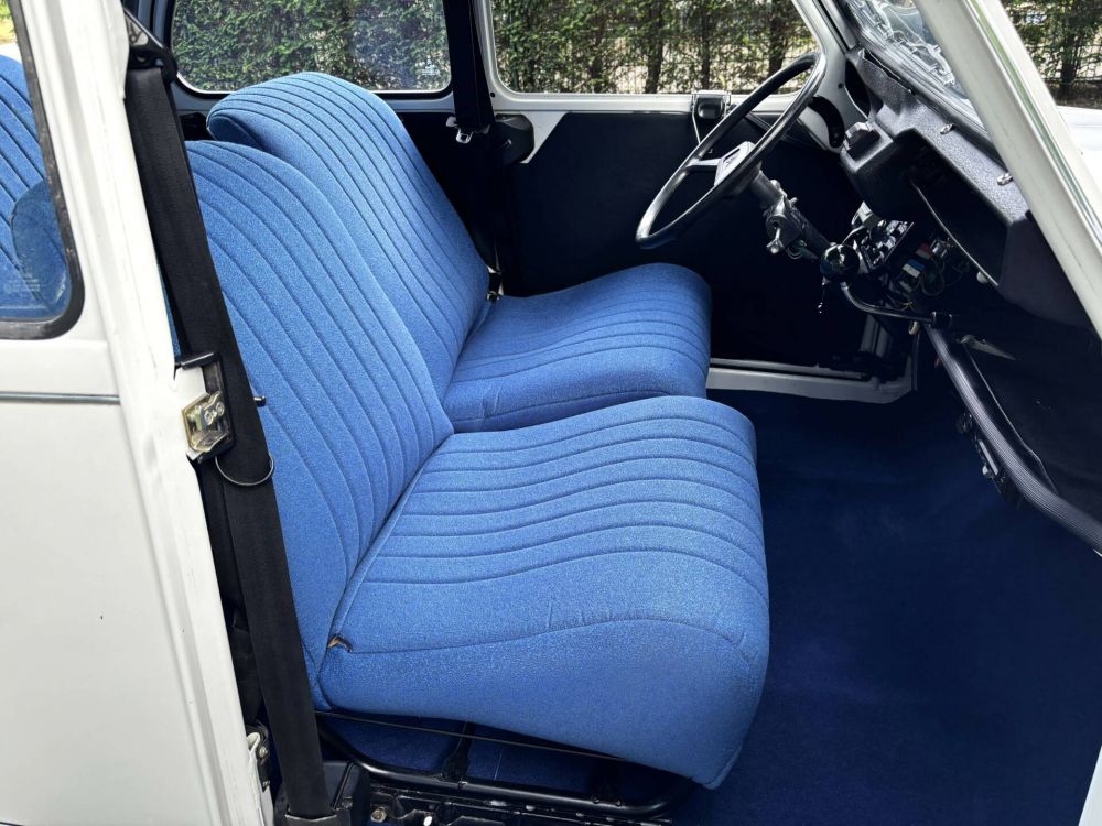 As you would expect, the complete interior is also in top condition. The original bench has been replaced with seats, with the driver having an adjustable backrest. So you sit much better! The blue fabric upholstery is brand new and so very nice. It looks very good with the white paint anyway. A new modern radio with blue tooth has been fitted.