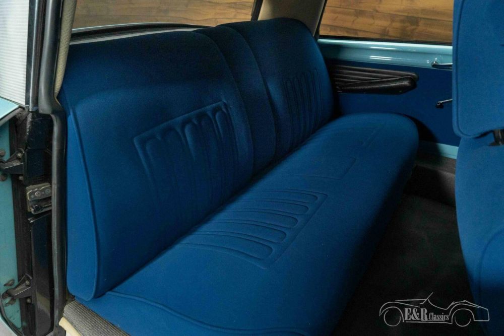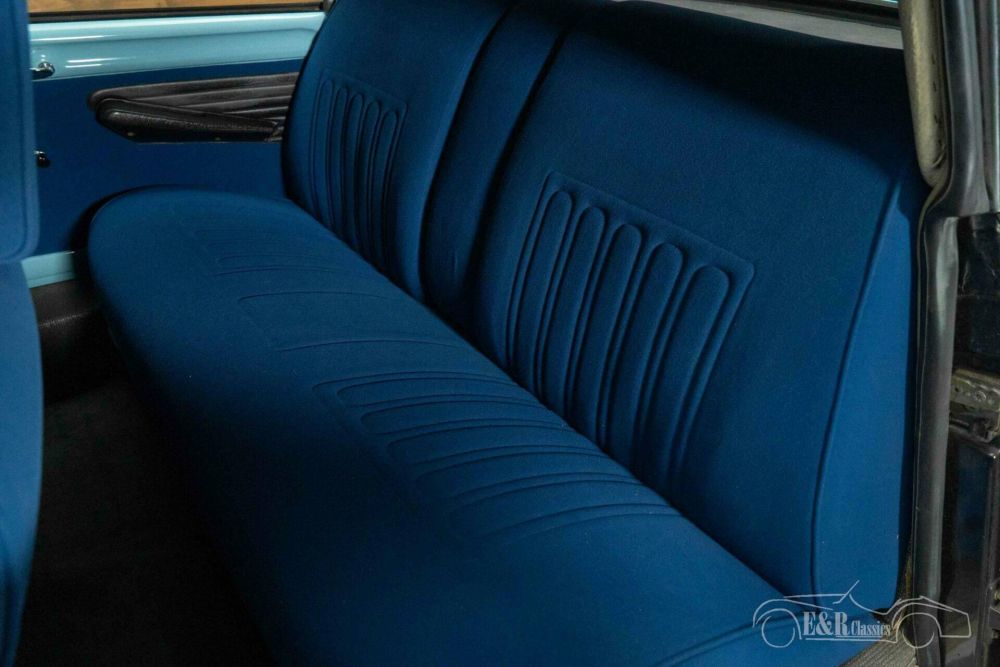 The exterior of this Citroën DS Super is finished in an elegant light blue paint, a color that perfectly highlights the car’s iconic lines and suits a French classic perfectly. The classic wheel covers and trim emphasize the timeless character of this Citroën. The interior is just as stylish, featuring dark blue velour upholstery that complements the body color. The front seats are equipped with a comfortable armrest, enhancing the relaxed driving experience. Additionally, this DS retains its original radio, a beautiful detail that completes its classic charm. A stunning combination of luxury, innovation, and French craftsmanship.