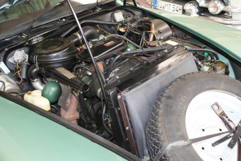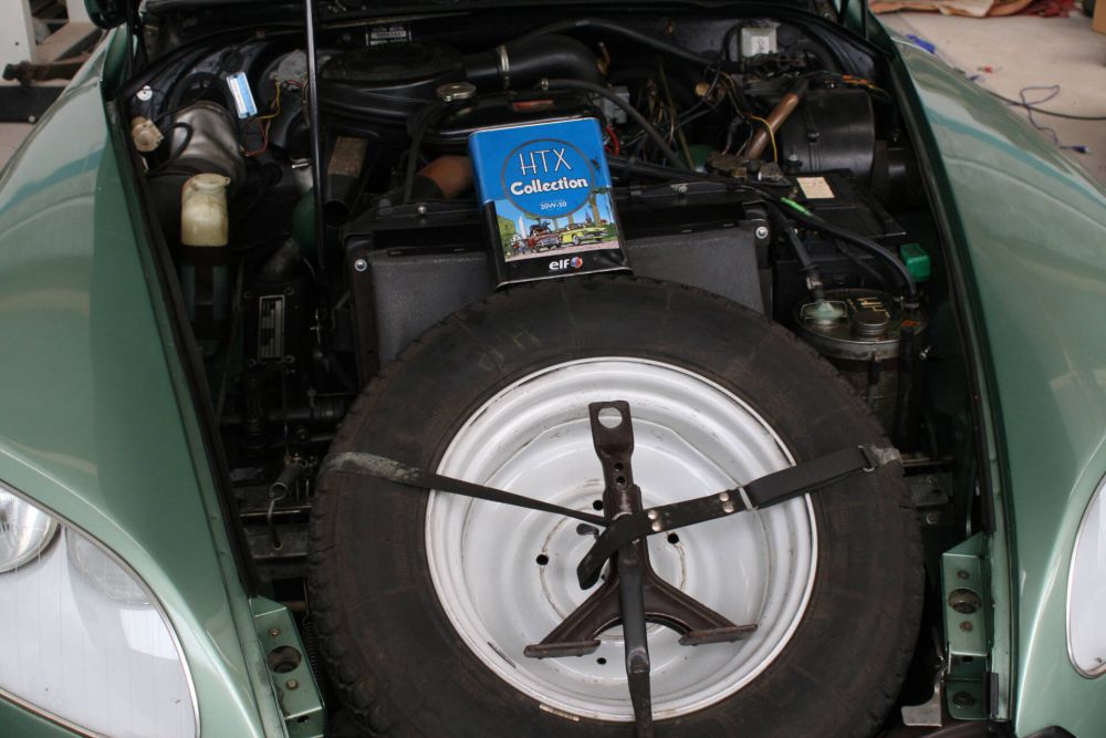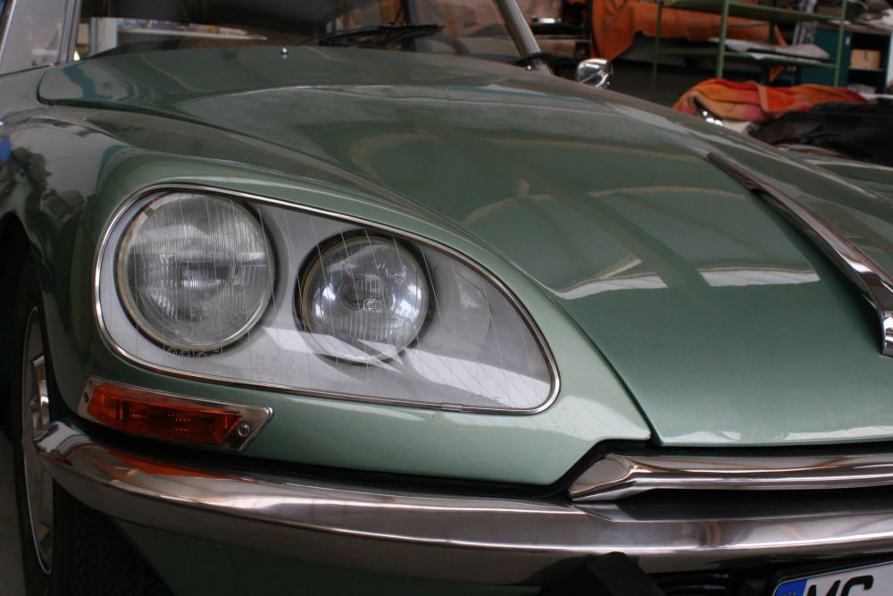 Immer wieder stößt man in der Verbindung mit den D-Modellen aus die Bezeichnung „Die Göttin“. Das hat den Hintergrund, dass in fast allen anderen Sprachen „das Auto“ oder „der Wagen“ nicht sächlich oder männlich, sondern weiblich betitelt wird. Darüber hinaus werden die beiden Buchstaben gesprochen, kommt es zur Bezeichnung „De-esse“ und das heißt auf Französisch „die Göttin“. Das nicht nur in 1955 zum Produktionsbeginn revolutionäre hydraulische Fahrwerk lies einen schweben und damit bewegt man sich eben auch fast „gottgleich“. Bei unserem Modell, dass wir im Kundenauftrag anbieten, handelt es sich um ein Fahrzeug des Modelljahres 1973. Die DS wurde am 24.11.1972 im französischen 79. Departement erstmals zugelassen. Im Jahre 2002, mit einer damaligen Laufleistung von 104tkm, wurde das im Originalzustand befindliche Fahrzeug aus Frankreich nach Deutschland importiert. Seither hat die DS23 mit behutsamen aber regelmäßigen Fahrten nochmals rund 21tkm abgeleistet, so dass man heute auf eine Gesamtlaufleistung von rund 125tkm kommt Die mit den originalen Weber-Vergasern ausgestattete Göttin verfügt über eine 4-Gang Halbautomatik – das bedeutet, dass man zwar den Gangwechsel noch händisch erledigen muss, aber die Kupplung funktioniert über eine selbsttätige Hydraulik. Vieles an der DS war damals schon innovativ und ist es zum Teil heute noch. Das hydropneumatische Fahrwerk gehört sicher zu den Highlights. Wie „die schwebende Göttin“ ihre Höhe anpassen kann ist einmalig im Autobau. Im Ruhezustand liegt der Wagen förmlich am Boden. Startet man den Motor steigt das D-Modell auf. Dabei wird die Höhe unabhängig von der Beladung gehalten. Man kann das Fahrwerk sogar manuell hochfahren, um z.B. in unwegsamem Gelände Hindernisse zu überwinden. Die Hydraulik war in den ersten Jahren, bis 1967 sehr wartungsintensiv. Ab 1967 mit der Einführung der „grünen“ Hydraulik, konnte dies deutlich reduziert werden. Durch das Baujahr alleine liegt unsere DS längst „im grünen Bereich“. Bereits seit 1968 war die „neue“ Front – die dritte in der Evolutionsgeschichte üblich. Die „neuen“ DS und ID hatten fortan Doppelscheinwerfer hinter Glas an einer nochmals geglätteten und überarbeiteten Frontpartie. Den Scheinwerfer-Entwurf hatte übrigens noch Flaminio Bertoni als letztes Werk hinterlassen, er war plötzlich im Jahr 1964 verstorben. Den Rest der neuen Frontpartie hatte das Designteam unter seinem Nachfolger Robert Opron gestaltet. Dass die inneren Scheinwerfer hinter der Glasabdeckung sich nun mit in die Kurven lenkten, wurde von der Werbe- und vor allem der Presseabteilung Citroëns groß herausgestellt. Dabei handelte es sich dort nur um Zusatz-Fernscheinwerfer. Doch was heute fast völlig sinnloser Zierrat ist, geeignet nur für ganz wenige Momente beim nächtlichen Fahren, bei denen niemand entgegen kommt und man Fernlicht benutzen kann, war auf den deutlich leereren Landstraßen um 1968 tatsächlich noch öfter nutzbar. Erstmals kamen verschiedene Metallic-Lacke zum Einsatz. Bei dieser „Göttin“ sprechen wir da von „verde métallisé“ (günmetallic) mit der passenden grünen Perlonverlours-Ausstattung „DX932-326“. Neben diesen neuen Farben zeigte sich die Baureihe der DS und ID nun erstmalig gänzlich vereinheitlicht. Denn alle Wagen hatten nun das gleiche, moderner und sportlicher anmutende Armaturenbrett mit drei Rundinstrumenten eingebaut. Vom GS (wie vom SM) entliehen sich die D-Modelle ab Herbst 1971 ihre letzte optische Retusche: Die Türgriffe waren fortan genau wie bei den Schwestermodellen versenkt. Das gab dem Auto nicht nur ein moderneres, noch glatteres Aussehen, es war neben dem Unfallschutz auch ein weiteres Detail im Hinblick auf den aerodynamischen Eindruck, der den Wagen nun, 17 Jahre nach seiner Einführung, immer noch „fortschrittlich“ aussehen ließen. Zwei technische „Gimmicks“ (im Programm eingeführt durch die SM-Modelle) rundeten das Angebot der Technik-Auswahl bei den DS21 ab: Diese waren nun sowohl mit Klimaanlage (erkennbar an kleinen Schlitzen in den Vorderstoßstangen) als auch mit Vollautomatik von Borg Warner zu ordern. Die wenig angepassten, in England produzierten BW-Automaten drosselten jedoch die Höchstgeschwindigkeit und das bei deutlich um rund zwei Litern gestiegenem Verbrauch. Die Kombination aller Optionen galt übrigens in den Werkstätten schnell als „GAU“, die Motorräume solch seltener DS21ie mit Klima und Automatik wurden als „Schlangengrube“ bezeichnet. Wo sehr geduldige und vor allem bestens ausgebildeten Spezial-Mechaniker fehlten, litten die Fahrzeuge häufig bald an einem, von der Sache her eigentlich völlig unverdient, schlechten Ruf, sobald technische Probleme auftraten.