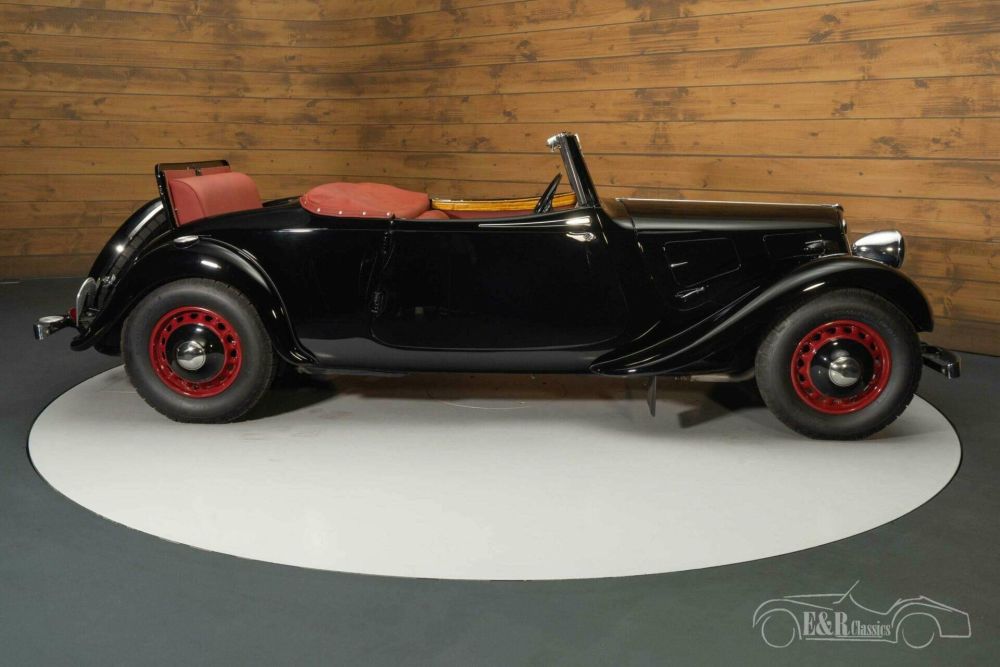 We offer for sale this beautiful and very rare Citroën Traction 7C Cabriolet from 1937. This Citroën comes from the private collection of a well-known customer of E&R Classics and has been extensively restored. The Citroën Traction 7C Cabriolet is a very rare appearance, of which only about 450 were built. Finding a Traction Cabriolet is not easy, let alone in the condition this one is in. The Citroën Traction was a car that was far ahead of the competition at the time and was the first mass-produced monocoque car with front-wheel drive. Furthermore, this classic is equipped with independent suspension and hydraulic brakes, developments that were very innovative in the 1930s. The Citroën is powered by the 1628cc 4-cylinder engine that is coupled to a manual 3-speed gearbox.