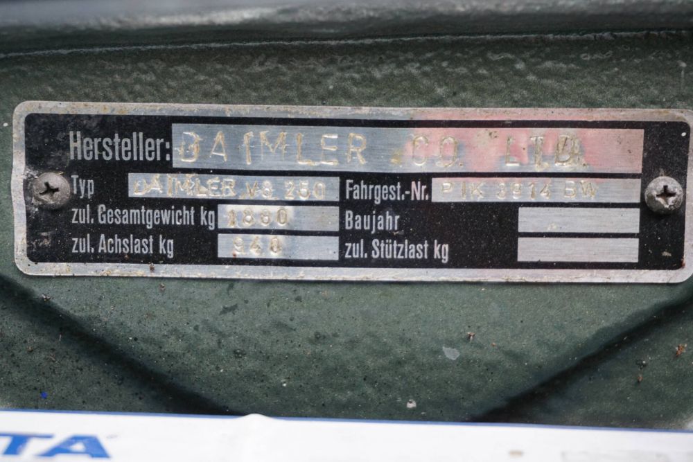 Uno sguardo agli interni mostra che i precedenti proprietari della Daimler hanno avuto molta cura anche in questo caso. La pelle e il legno sono in buone condizioni, alcuni con una leggera patina, che tuttavia non pregiudica l'impressione generale. Un'importante nota a margine: i sedili del lato guida e del lato passeggero sono stati sostituiti dagli attuali proprietari per motivi di sicurezza con derivati con poggiatesta di una Daimler più recente. Tuttavia, i sedili originali sono ancora presenti e verranno sostituiti al momento dell'acquisto del veicolo.