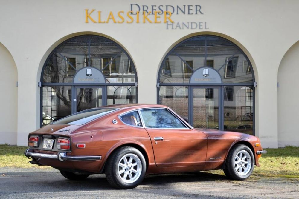 Dieser Nissan Datsun 240Z präsentiert sich weitestgehend in einem hervorragenden Originalzustand. Wie die meisten dieser Fahrzeuge stammt auch dieser aus den USA. Er wurde über einen Datsun-Scout im Auftrag einen 240Z-Sammlers gesucht und nach Deutschland importiert. Tatsächlich hatte der Datsun nur EINEN Halter in der gesamten Zeit in der USA. Dies ist entsprechend dokumentiert. Somit kommt der Datsun inklusive der zwei deutschen Halter auf 3 Halter insgesamt.Wir haben den Wagen von diesem Sammler 2021 gekauf und an einen unseren Kunden verkauft. Der Datsun wurde bei uns regelmäßig gewartet und befindet sich in einem technisch und optisch sehr guten Zustand. Zuletzt wurde noch ein zeitgenössischer Radsatz montiert und eingetragen. Die Originalräder sind vorhanden.