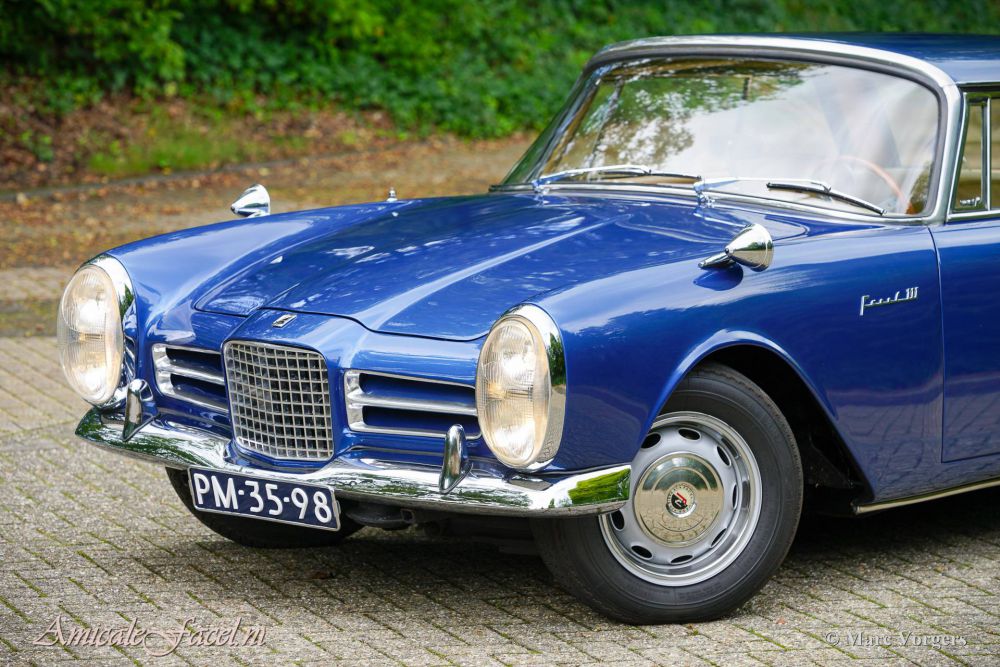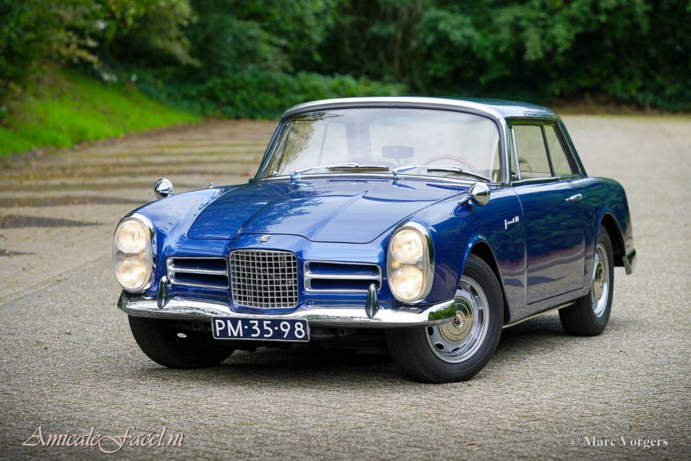 Facel Vega Facel III, year 1964. Colour blue metallic combined with a beige vinyl interior, pale beige carpet, and beige head lining. This wonderful Facel III was sold new in Switzerland where it was first registered in 1965. Between 1977 and 1979 the bodywork was restored. In the early 1980s the car was sold to the Netherlands where it lived with one owner for about 40 years! After purchase the Dutchman drove 1900 kilometres with the Facel III before it was garaged from 1981 until 2021. AFH/Classicjob purchased the car from the long-time owner and brought the car back to life with an overhaul of the carburettors, renewal of the petrol tank, fresh rubber hoses, air-filters, sparkplugs, and fluids. The interior was cleaned, and the headlining was renewed. We sold this very original Facel III to the current owner in January 2022. The owner commissioned us a full repaint of the body in the original colour, the installation of an air-conditioning unit in the boot, and the fitment of original specification Michelin XAS 185-14 tyres. This wonderful Facel III is in a very good and remarkably original condition, the car shows all the original details, and the original interior is in a beautiful condition! The car is fitted with two bullet-style wing mounted rear view mirrors and a vintage car stereo. This is a wonderful Facel III in a beautiful condition and mechanically and technically up to date! The car is ready for a new owner to be enjoyed! This Facel Vega is for sale at ClassicJob. Price: € 78.500, -