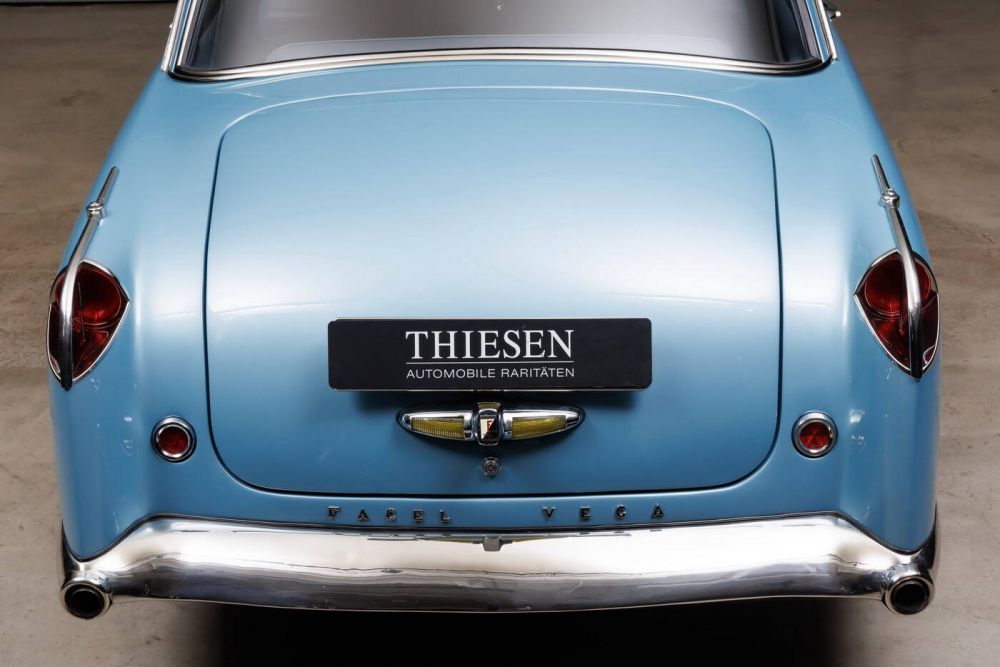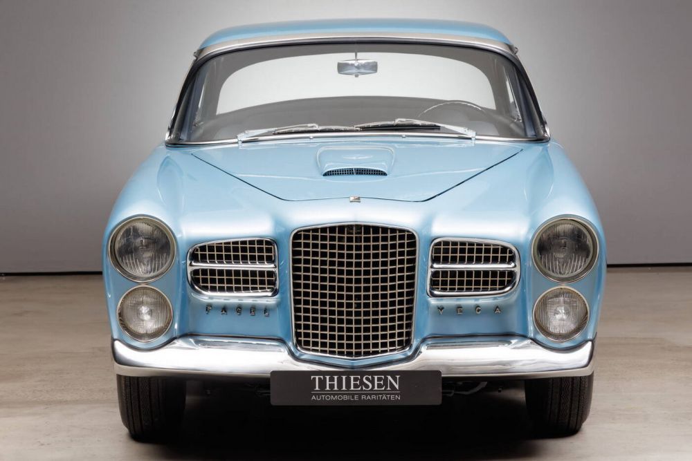 The Facel Vega presented here was delivered to Portugal in April 1957. In 2007, the car was rediscovered as part of a collection of 180 barn finds. Under the direction of its previous owner, the vehicle was completely restored to the highest standard over a period of four years. The restoration process is documented in an extensive folder with photos and invoices. The car already has the more powerful FV3B engine, a five-speed manual gearbox and electric power steering.