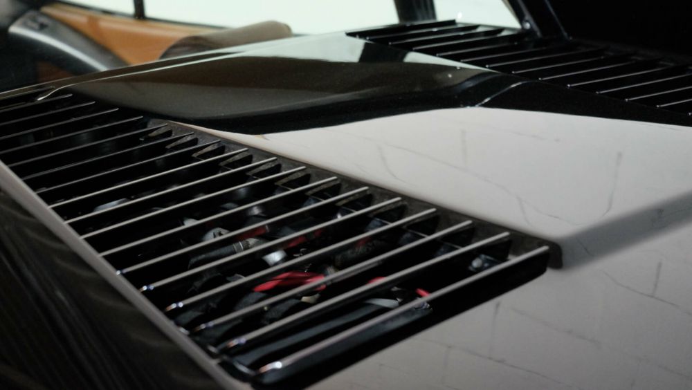Vor Kurzem wurden Lackschwächen an der Motorhaube, den Stoßstangen und der unteren Spoilerlippe behoben. In diesem Zusammenhang wurden auch die damals nachträglich angebrachten und auf den Bildern noch erkennbaren hinteren seitlichen Begrenzungsleuchten entfernt und lackiert. Somit steht die original schwarze 308 Berlinetta Blech- und Lack-Technisch wieder sehr gut da.