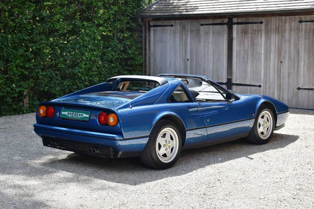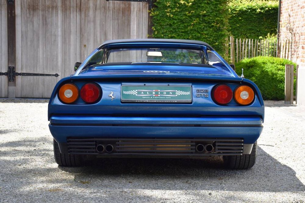 This example is originally delivered in Dubai by Al-Tayer Motors (PVT) Ltd on the 15th of January 1989 with European specification, and must have been exported in the same week to the UK as it had its first service at 1.127 km at Emblem Sports Cars in Dorset. The car is in exceptional condition, and comes with a complete service history. Total mileage is now 38.023 km, and it is clear that this car has always been maintained like it should. The last cambelt change and clutch replacement was in August 2020, and it has received some small services since as well - all documented with invoices. The colour combination of Blue Chiaro with Crema leather is gorgeous, and probably one of the best colours for a Ferrari 328. These mid-engined V8 Ferrari's are a real joy on the road, with an addictive soundtrack and a racecar-like driving position. The GTS has the benefit of a targa roof, which can be neatly stowed away behind the front seats in a tailormade vinyl cover.