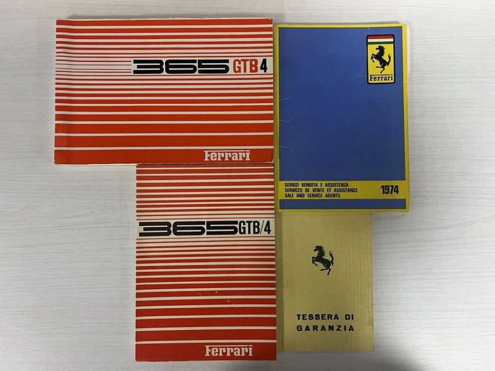 DISPONIBILE RARISSIMA MANUALISTICA ORIGINALE COMPLETA DI LIBRETTO USO E MANUTENZIONE, LIBRETTO AGGIORNAMENTI PER PARTI DI RICAMBIO, LIBRETTO DI SERVIZI VENDITA E ASSISTENZA CON CONCESSIONARIE FERRARI MONDIALI DELL’EPOCA ED INTROVABILE, RARISSIMA E PERFETTAMENTE CONSULTABILE TESSERA DI GARANZIA DOVE SI EVINCE LA DATA DI CONSEGNA IN DATA 1 MAGGIO 1974 DA DEALER UFFICIALE FERRARI M.G. CREPALDI AUTOMOBILI DI MILANO (MI) IN VIA FIORAVANTI, 17