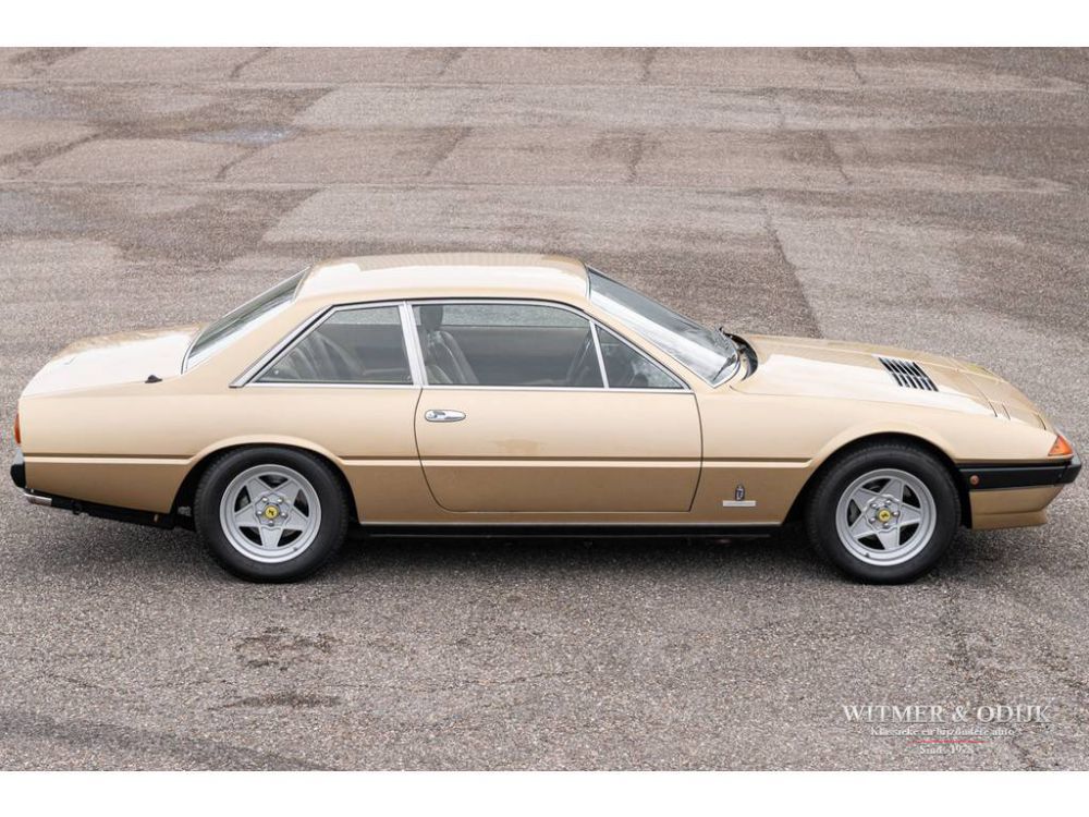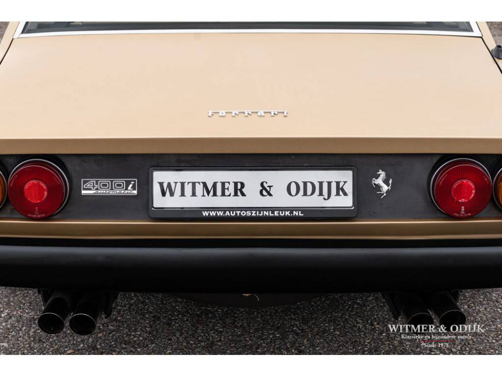 In 1976 introduceerde Ferrari voor het eerst een auto met automatische versnellingsbak. Hoewel voorzien van een Borg Warner versnellingsbak uit Amerika werd de auto daar nooit officieel verkocht. Ferrari dacht er de Amerikaanse koper mee te kunnen strikken, emissie eisen waar ondanks de toepassing van een Bosch KJetronic injectiesysteem niet aan werd voldaan ondermijnde de Italiaanse plannen. Het baanbrekende ontwerp van Pininfarina, als een van de eerste auto-ontwerpen zonder de klassieke grill tussen de koplampen, had al snel de Ferrari fans middels de autopers bereikt en werd zeer beperkt parallel geïmporteerd. Het plan van Ferrari in combinatie met de elegante ontwerp van Pininfarina sloeg dus wel degelijk aan in Amerika. Er werden door de 'illegale' import en de destijds kleine Europese markt weinig exemplaren van de 400i gebouwd. Slechts 884 exemplaren maken de 400i tot een van de zeldzamere klassieke V12's. En dankzij de automaat geschikt als gentlemen driver die net zo gemakkelijk even met u naar Albert Heijn rijdt als snel en ontspannen naar Parijs koerst. Dit fraaie exemplaar werd eind jaren negentig vanuit Italië naar Californië geëxporteerd en om daar aan de milieu-eisen te voldoen voorzien van katalysatoren en de daarbij behorende elektronische ontsteking. Een uitkomst voor bijvoorbeeld het gebruik in Duitse gebieden waar een katalysator vereist is. De auto was destijds roestvrij en origineel. In het droge Californië komt daar uiteraard geen verandering in dus de auto is nog steeds in prachtige conditie. In het vooronder ligt een directe afstammeling van de door ingenieur Colombo ontworpen V12 die ook de beroemde Daytona voortbewoog. Toch een 'weetje' wat indruk maakt als uw vrienden uw laatste aankoop bewonderen. Het zal niet eenvoudig zijn een beter exemplaar dan deze originele en onverpruste 400i te vinden. Tot in ieder detail een serieuze topauto. Zoals men dat zo populair noemt tegenwoordig, matching numbers and colors. Compleet uitgerust met airconditioning, elektrische ramen, stuurbekrachtiging, verstelbaar stuur, een volledig met leer bekleed interieur, getint glas, etc. In zeldzaam en bijna spectaculair ogend Oro Longchamp werd deze 400i gespoten. De schitterende diep glanzende lak is onbeschadigd, de auto bleef uiteraard altijd roest- en schadevrij. Ook de gevoelige matzwarte bumpers zijn strak en onaangeraakt. Zie de rondom perfecte passingen en strak plaatwerk. Uitzonderlijk gaaf en origineel. Het interieur van deze 400i is origineel en in zeer mooie onbeschadigde conditie. Let op de vorm van de stoelen, hier is duidelijk zichtbaar weinig in gezeten. Er zijn ook geen instapsporen op de stoelleuningen zichtbaar. Nergens stiksels los. Mooi soepel leer. Ook de middentunnel en dashboard zijn voorzien van leer in de kleur van de stoelen. Het originele met leer beklede Momo stuur is onbeschadigd en mooi glad. Centraal rond de versnellingshendel origineel onbeschadigd wortelnoten hout. De crème kleurige hemelbekleding is mooi schoon en niet verkleurd. Alle schakelaars, hendels en klokken zijn goed afleesbaar en werken naar behoren. Let ook op de strakheid van het leer op en rond het dasboard, nergens opgetrokken of uitgedroogd door teveel zonlicht. Alles bij elkaar een zeer fraai origineel geheel. In de motorruimte treft u de originele 310pk sterke V12 met Bosch KJetronic injectie. Een lust om naar te kijken. Optisch is alles nog fabrieks origineel. De motor loopt mooi rond, rookt niet en heeft een goede oliedruk. In de kofferruimte is de bekleding nog origineel en onbeschadigd. Onder de laadvloer een volwaardig reservewiel. De vier lichtmetalen velgen zijn min of meer onbeschadigd en voorzien van zeer goede Michelin TRX banden. Dit bovengemiddeld fraaie exemplaar werd nieuw uitgeleverd door Auto Becker, importeur destijds in Duitsland van Ferrari. De originele boordmap met serviceboekje uitgegeven door Becker is evenals de instructieboekjes aanwezig. Er is een dossier met facturen en de eigenaren historie. De auto is technisch geheel up-to-date, rijklaar dus. Vanaf 2015 werd aantoonbaar €20.000,- in de techniek van deze 400i geïnvesteerd. Dit in combinatie met de lage kilometerstand herkend men optisch alsmede rijtechnisch overduidelijk. Een prachtige gentleman Ferrari! Zie onze website voor meer dan 100 foto's www.witmerodijk.nl of u gebruikt de volgende link, https://witmerodijk.nl/te-koop/ferrari-400i-1983/2269