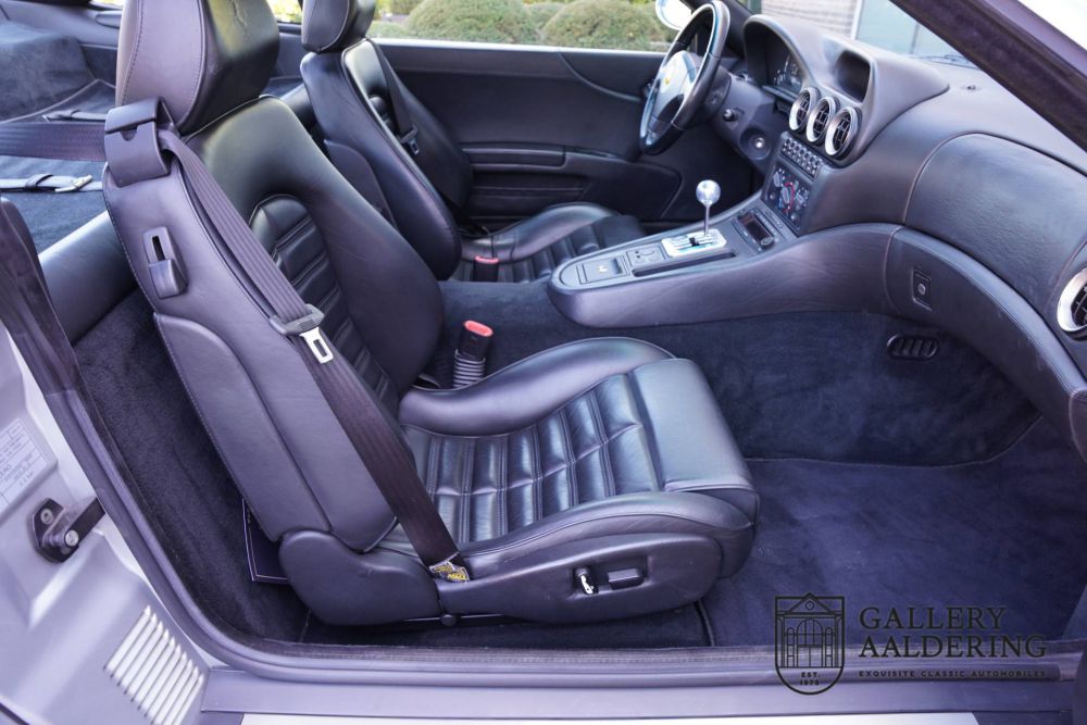 We regularly see a 550 Maranello in our showroom. This silver gray 550 was delivered new in the Netherlands at Ferrari Kroymans. It must have been a fantastic moment for the first owner, who was able to collect his car from the dealer in Hilversum. The buyer has opted for a subdued but fresh silver-grey paint. It gives the Ferrari a beautiful timeless look and the paint is also in excellent condition. That is not a big surprise with a mileage of 74,133. Indeed, this 550 Maranello has not felt a lot of Dutch asphalt slip under it.