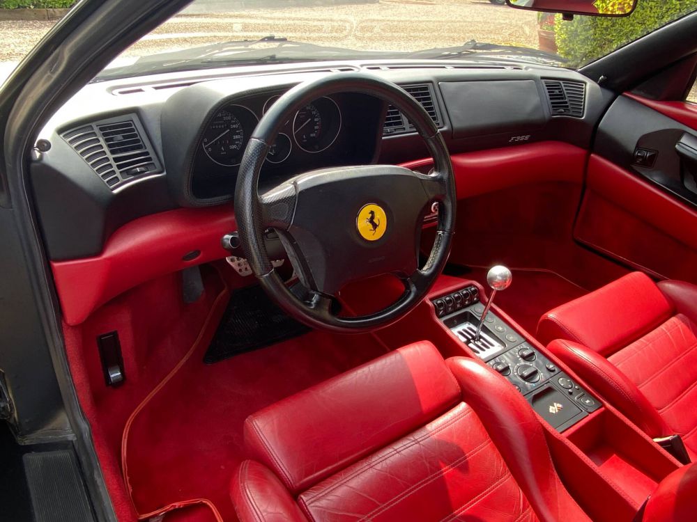 Ferrari F355 Berlinetta for sale. Original Italian car but already registered in Belgium and used since 2019. Very successful color combination in Nurburgring silver with a dark red leather interior.