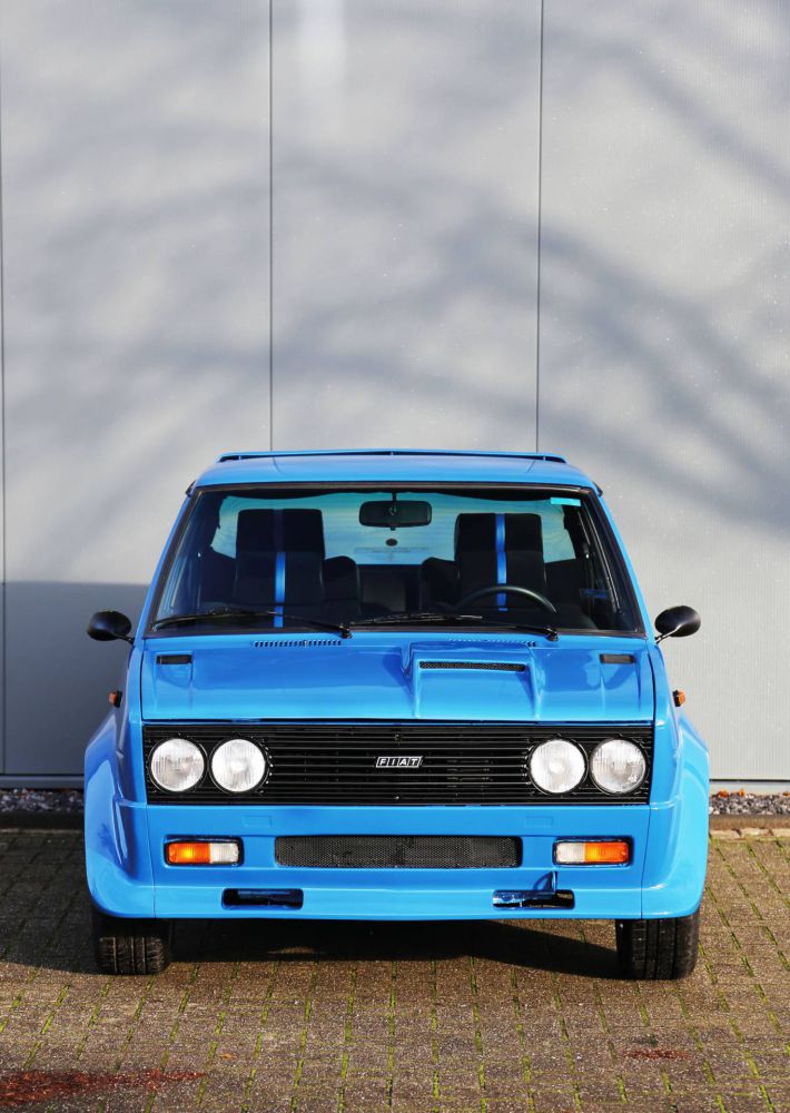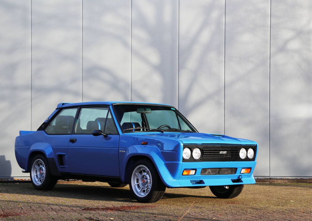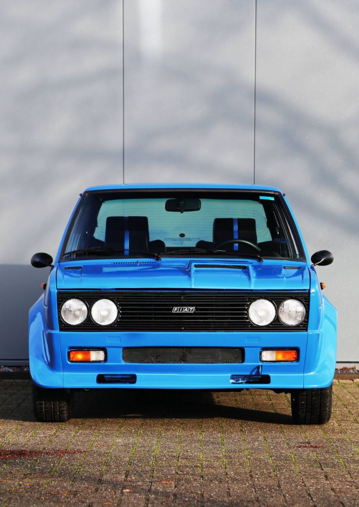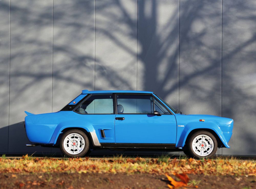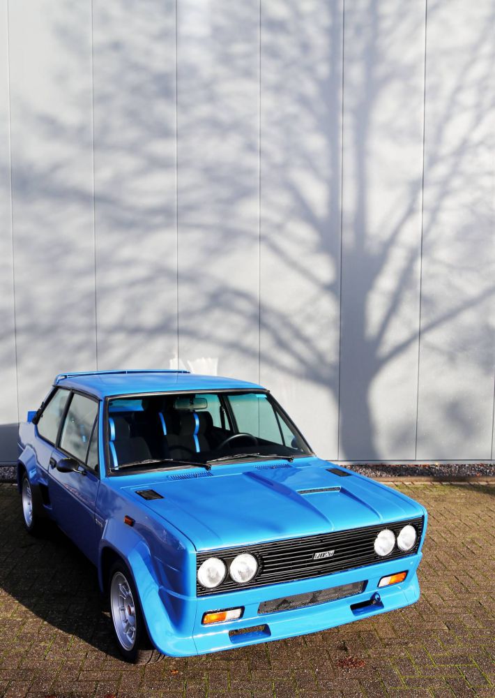 Our 131 Rally is a great tribute to the original racing cars but with the looks of a clean street car. With her genuine 2 door body and great running gear. We purchased her in Italy where she was given a full restoration. Here she was converted to an Abarth Rally Tribute with her wider fenders, correct bumper and much more. Our 131 has been painted in this heritage Blue Francia colour.