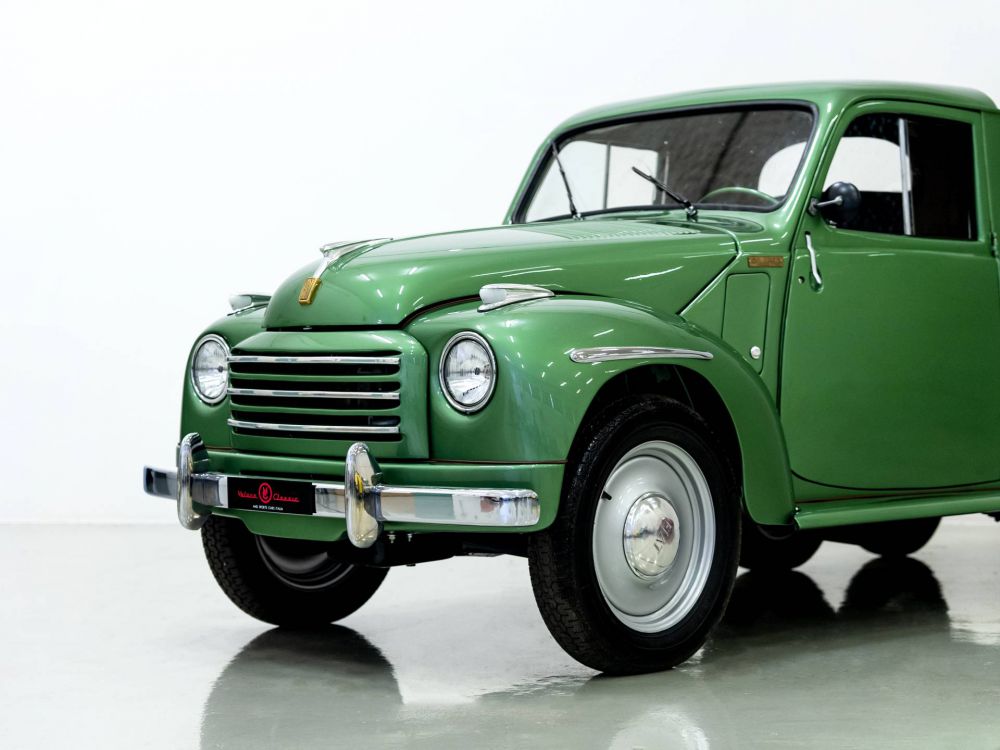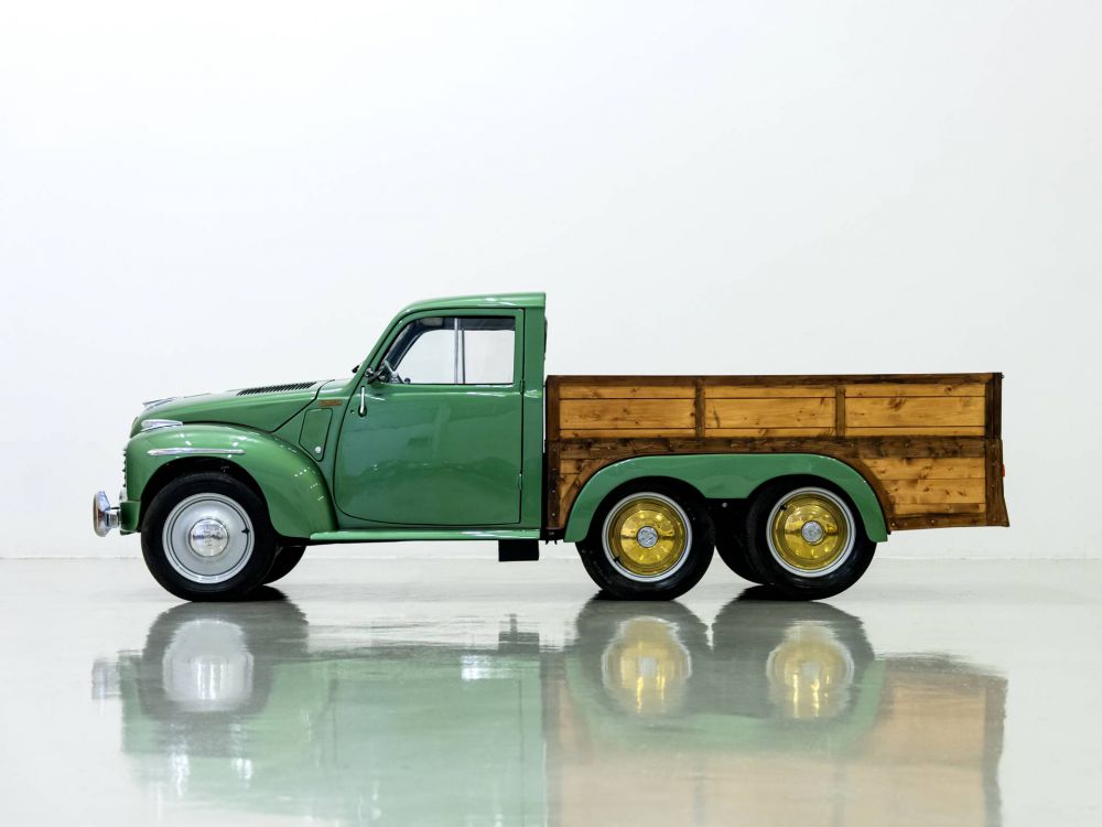 Started its life as a 500 C Giardiniera in 1951 has undergone a conversion from Ollearo to a 6 wheeler truck our Topolino. Later barn found as a Vespa service truck in the Piedmont countryside.In 2021 the car has benefitted from a nut and bolt restoration  and brought back to its original specification finished in green colour with wooden panels for the loading bay and a lovely spare wheel compartment under the loading bay, the mechanical side has received the same level of attention with full engine rebuilt with new internals suspension and gearbox refurbishment as well as the rear differential, the cabin has been also retrimmed with tan leather to compliment the body colour  .