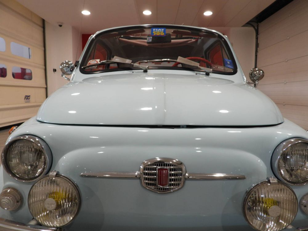CARATTERISTICHE FIAT NUOVA 500 F ”DOLCEVITA”: Interni originali in sky in colore rosso e bianchi nella parte superiore dei sedili anteriori, Telo capotte apribile di colore rosso, Volante originale in bachelite avorio con servo-clacson in acciaio inox (optional dell’epoca) e rivestimento volante in vipla rosso con bottoncini automatici, Mostrina “FIAT 500” sul cruscotto, lato passeggero, Autoradioradio “VOXON” dell’epoca, strumentazione supplementare con orologio analogico, temperatura raffreddamento, contagiri d’epoca, porta thermos (optional dell’epoca) sull’interno della portiera passeggero, cinghia in cuoio ferma valigie con valigia dedicata, tappetini in gomma rossa dell’epoca (nuovi) tasche porta documenti morbide sulle portiere, fari di profondità MARSCHALL, fanale retromarcia, fanale retronebbia rosso, portasci FAPA (fondo di magazzino dell’epoca) completo di sci anni sessanta comprensivi di bacchette, ruote in lega a raggi MILLERIGHE con gomme nuove a fascia bianca, copri prese d’aria in gomma di colore rosso e paraspruzzi dell’epoca sulle ruote posteriori. CARATTERISTICHE E MODIFICHE ALLA MECCANICA E AL MOTORE: Motore revisionato della FIAT 126 (650cc) con scarico in acciaio inox corsa, cambio sincronizzato integralmente revisionato (disponibile motore e cambio 498 C.C. originale). DISPONIBILI INCLUSI NEL PREZZO: MOTORE E CAMBIO ORIGINALI DI PRIMO EQUIPAGGIAMENTO CON MOTORE TIPO FIAT 110F.000 2899950, TELO CAPOTTE NERO E MECCANISMO ORIGINALE, SEMIASSI ORIGINALI, CERCHI ORIGINALI TELAIO NR. 110F*13349XX