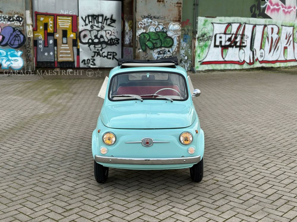Presented in the ultimate colour of Azzuro Acquamarine 0433 over a Red upholstery A lovely F FIAT 500, still boasting details of earlier models at a more accessible price-point Presented in great condition throughout, aesthetically as well as technically Full history from new and accompanied by all original documents including Libretto & very rare Foglio Complementare Supplied with all original accessories incl jack, complete toolkit and spare wheel Totally sorted and ready to by snapped up by a new owner Can be suppled with a Dutch registration or Italian documents Priced attractively
