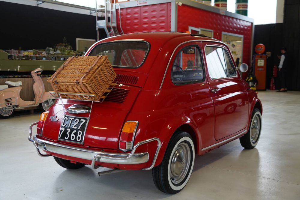 DG Classic Cars presents a stunning example of Fiat 500 L from 1971, completely restored a few years ago and perfectly preserved after the restoration, no work to do, color combinations highly sought after by Fiat enthusiasts, completely original, equipped with whitewall tires and parcel carrier with wicker suitcase. Truly beautiful