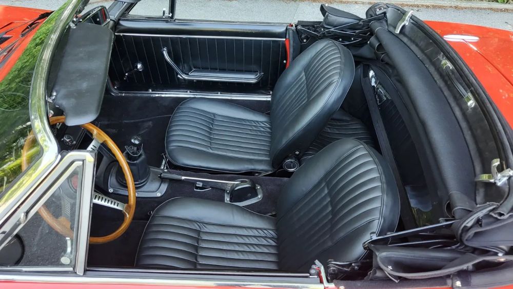 Sehr schöner Fiat Dino Spider, 1. Serie mit Ledersitzen. Der Motor wurde von Ferrari konstruiert und ist ein echter Rennmotor mit 2000 ccm und 160 PS, Fünfganggetriebe. Italienische Ausführung mit Zentralverschluss Felgen. 2024 aufwändig mit sehr vielen Neuteilen in den jetzigen Zustand gebracht - Karosserie aussen komplett entlackt und neu lackiert - wie original rot. Es fanden sich keine relevanten Roststellen!!!. Motor und die Technik wurden weitgehend zerlegt und revidiert. Die Sitze wurden neu mit Echtleder bezogen und das Verdeck und der Teppich erneuert. Auspuff original Abarth Endtöpfe. Hier ein Auszug der Arbeiten/Neuteile: