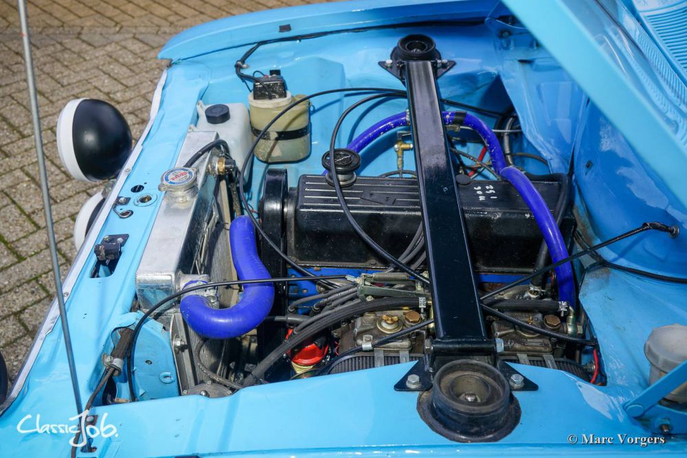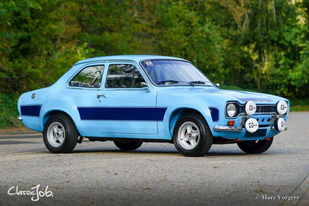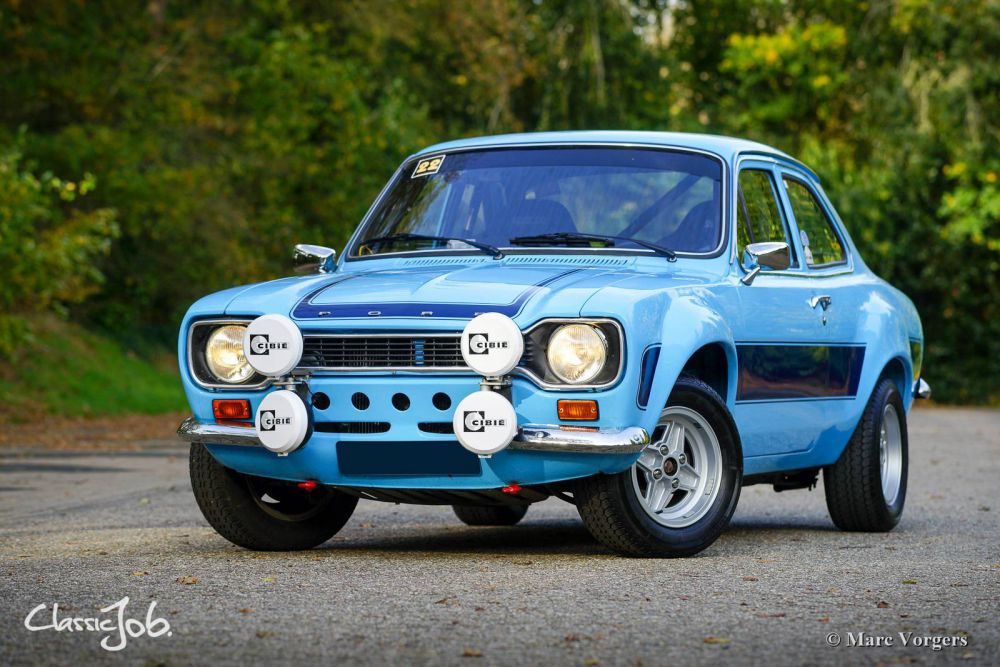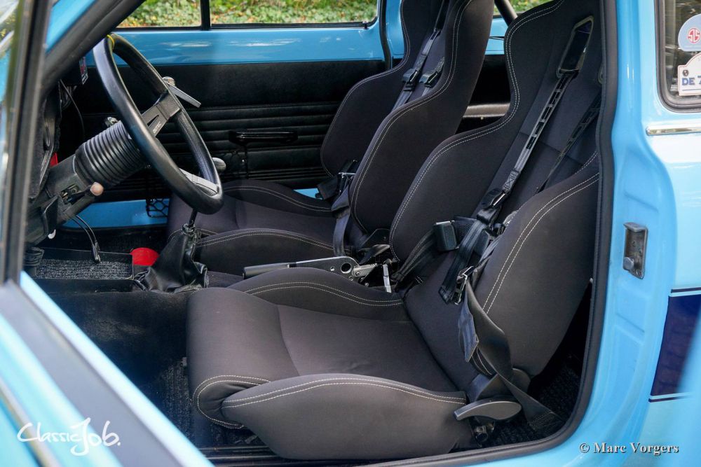 Ford Escort Rally Car, year 1968. Colour blue with black striping. Black rally interior fitted with anthracite colour Sparco rally bucket seats with 4-point safety harnesses. This fantastic Ford Escort was sold new and registered in the Netherlands on 22 May 1968. In recent years the car was restored, modified to RS2000 “wide body” specifications, and extensively rally prepared. The final preparations were executed by Classic Job. This magnificent Ford Escort features a highly desirable RS2000 type 2-Litre “Pinto” four-cylinder OHC engine fitted with two “twin choke” Weber carburettors, sports air-filters, a high-capacity radiator, and a free flow sports exhaust system. The engine is mated to a 5-speed gearbox. The car was rally prepared in every detail, the body and suspension were stiffened, a roll cage was fitted, a strut-bar was added, a limited slip differential installed, and much more. A file folder filled with documents and photos describing the build and preparation in detail is present. The interior features all the instruments and safety gear the driver and the navigator need and can wish for. This is a fully equipped, and very well-built historic rally car. This Ford Escort rally car in RS2000 look drives and handles impressively. This fantastic rally car is ready for any historic rally event in the hands of the new owner!