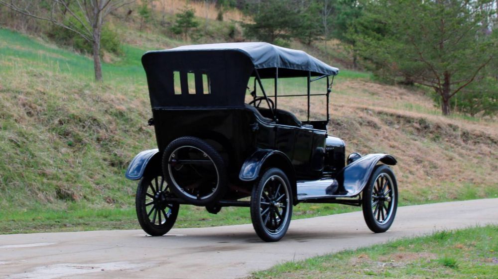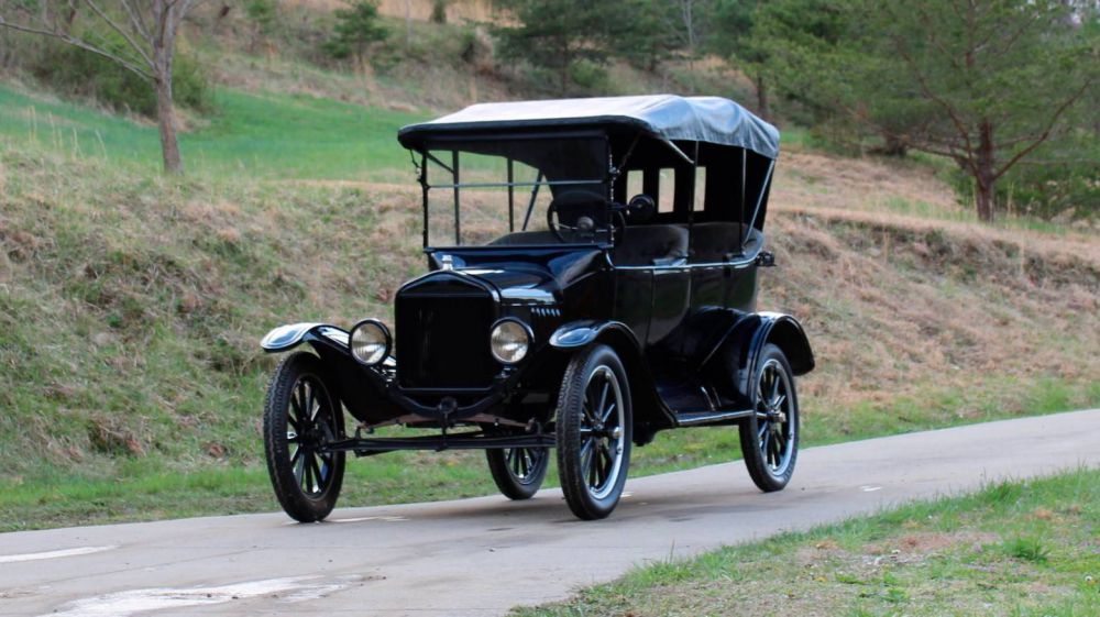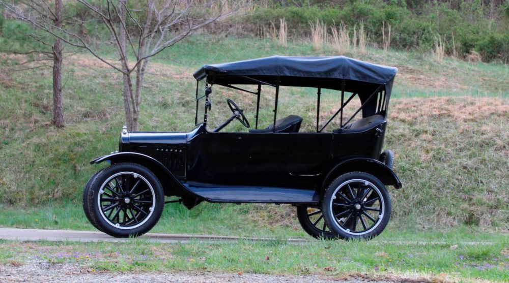 A beautiful black 1920 Model T Touring, with black exterior and interior and a black folding top.Well preserved, it is a 4-door car with a 3-speed manual transmission. A rear wheel drive with a top speed of 42mph.This 1920 Model T Touring runs on an inline four-cylinder engine with planetary transmission. It has wood-spoke wheels and comes with a spare rear-mounted tyre.It is generally regarded as the first affordable automobile, which made car travel available to middle-class Americans.