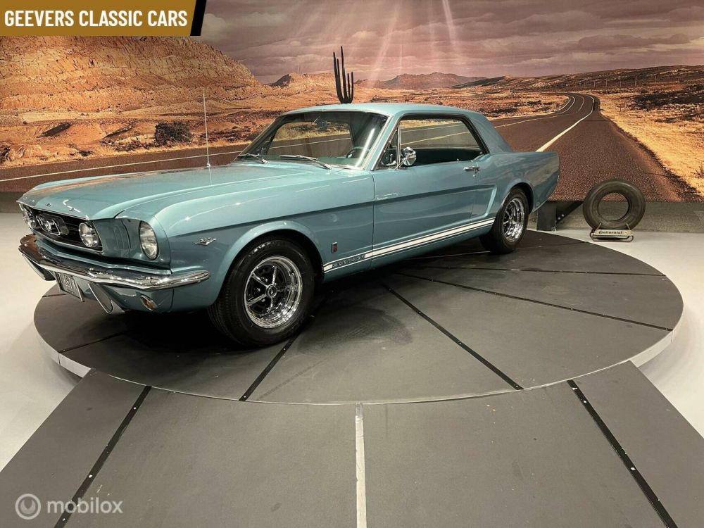 Just new in stock an GT mustang from 1966 its an A-code with 225hp engine the factory color tahou torquoise looks nice its an older paint but stil very shiny the interior matsch the color and looks great the rally pac works great what was a extra option this pony runs drives excellent it has factory disc brake power steering and an working air-conditioner, the body is nice original even the floors are factory original after 55 plus years its an super good car hat is ready to drive its an mustang with eu registration