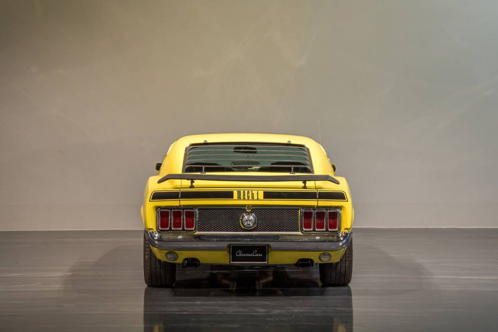 Das Mach 1 Konzept von Ford war einfach aber effektiv. Als Basis nahm Ford den den Mustang Fastback der ab 1969 Sports Roof hies und stattete Ihn mit optischen und performance Teilen aus. Mattschwarze Motorhaube, Haubenschnellverschlüsse, Sportfahrwerk, Chrome Tankdeckel, Deluxe Interior waren nur einige der optischen Aufwertungen. Für den Motor gab es 5 verschiedene Motoroptionen von 5.8 - 7.0L Dieser Ford Mustang Mach 1 wurde am 16. Januar 1970, 3 Tage früher als geplant , Dearborn fertig gestellt und an einen Händler in Thomasville, Georgia ausgeliefert. Der Wagen entspricht heute noch den Optionen und der Farbe wie er damals das Werk verlies.