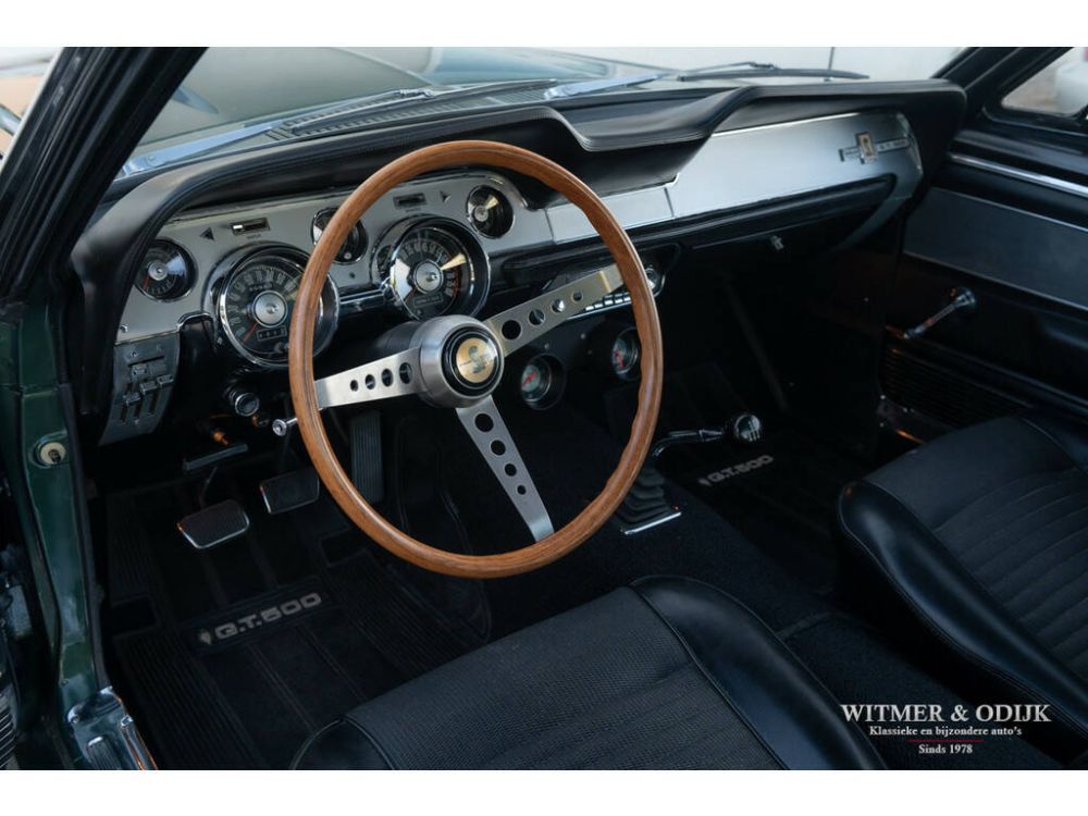 De meest gebouwde 'sportwagen' ter wereld, dat is nog steeds de Ford Mustang. Reken die nieuwe lelijkerd met een elektromotor, waar door een marketing dwaas helaas ook dat logo op werd geplakt, even niet mee. Jaar in jaar uit werden honderdduizenden Mustangs verkocht. In 1967, het jaar waarin op 5 februari deze GT500 werd gebouwd, werden maar liefst 472.000 Mustangs gebouwd. De Fastback Shelby GT500 reed in dat jaar slechts 2.048 keer de fabriek uit. Carroll Shelby werd door Ford aangetrokken om de Mustang een echte sportwagen te laten worden, Shelby had met eerdere eigen ontwerpen bewezen succesvol race- en sportauto's te kunnen ontwerpen en bouwen. Legendarisch zijn natuurlijk de successen van Ford op Le Mans die het vooral aan Shelby te danken had. In die beroemde GT40 werd het 7ltr. motorblok gebruikt wat uiteindelijk ook in de Shelby GT500 werd geperst. De samenwerking met Shelby werd uiteindelijk geen commercieel succes. Het grote publiek vond de auto's door het gebruik van een dergelijk grote motor veel te luidruchtig en men kon geen waardering opbrengen voor het lichter maken van de auto. Dit laatste resulteerde in het verwijderen van (comfortabele) interieurdelen, destijds een onbegrepen manier om auto's sneller te maken. Uiteindelijk, jaren later, ging men de denkwijze van Shelby meer waarderen en droeg bijvoorbeeld de film 'Gone in 60 seconds' bij aan het succes van de GT500. Helaas zijn om voornoemde redenen slechts 0,007% van alle Fastback's een Shelby. Dat helaas geldt natuurlijk niet voor wie zo'n raspaard in de garage heeft staan. Voor wie wel die garage maar nog niet die originele Shelby GT500 heeft doet zich hier een unieke gelegenheid voor. Nu te koop is deze Mustang, niet alleen een zeldzame en zeldzaam fraaie GT, ze heeft eveneens een degelijke en volledig navolgbare herkomst. Voorzien van een perfect gedocumenteerde historie in schrift en beeld. Van de originele aankoopfactuur tot aan een opsomming van alle eigenaren en hoeveel ze destijds voor de auto betaalde, alles is in twee dikke albums bij de auto aanwezig. Door wie, wanneer en hoe ze gerestaureerd werd, alle data is bekend. Slechts enkele honderden kilometers werd met de auto gereden na de restauratie. Uitgevoerd in een van de meest begeerlijke kleurstellingen Dark Moss Green gecombineerd met een nieuw zwart interieur. In 2018 naar Nederland gekomen en rijklaar gemaakt door Mustang specialist Voorend USA Cars. De auto kende slechts één Nederlandse eigenaar. In exact dezelfde 'concoursstaat' als ze in 2018 werd afgeleverd nu bij ons in de showroom. Zie onze website voor meer dan 100 foto's www.witmerodijk.nl of gebruik de volgende link, https://www.witmerodijk.nl/te-koop/ford-mustang-fastback-shelby-gt500-1967/2473