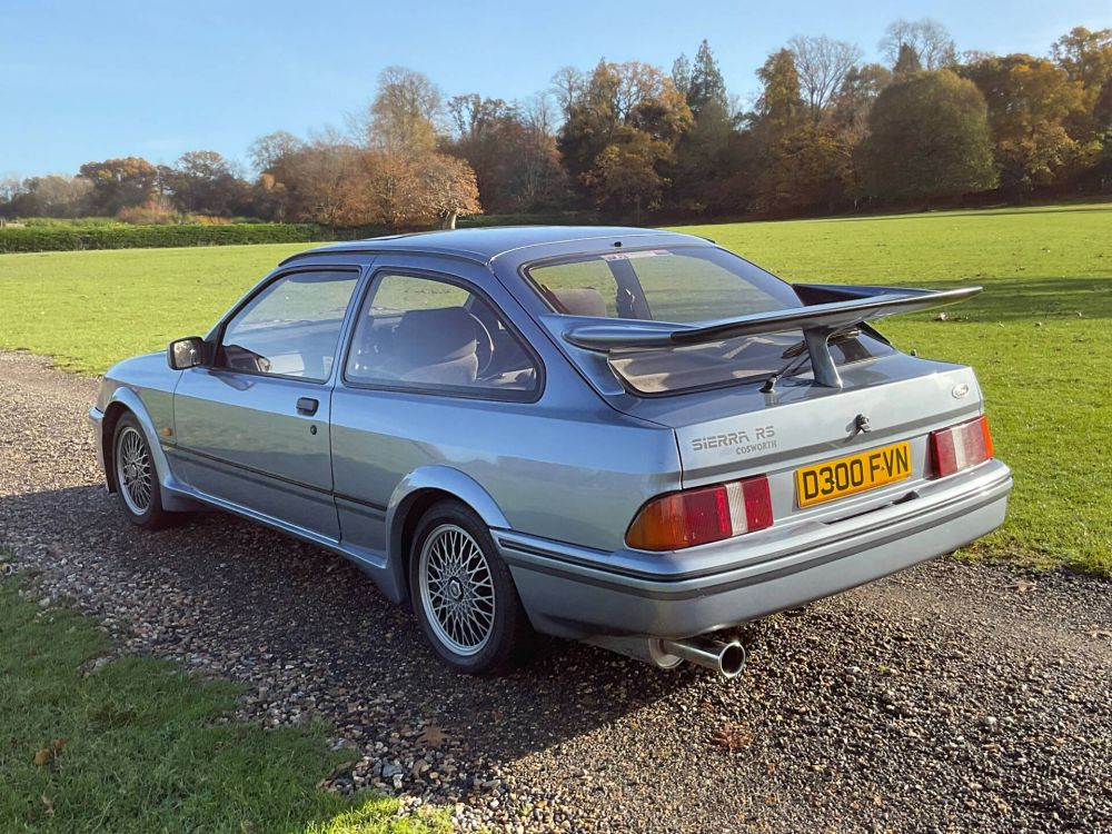 1987 Ford Sierra R/S Cosworth. 89,845 miles. Finished in moonstone blue metallic with cashmere grey/red velour and Roma fabric upholstery for the Recaro front seats & rear bench. Under the bonnet is a rebuilt 2.0-litre turbocharged inline-four, delivering around 204bhp and 205lb-ft of torque to the rear wheels via a Borg-Warner five-speed manual transmission. The engine has been rebuilt by Grace Engine Developments in Newbury, and the car has not yet been fully ‘run in’, having covered only 500 miles since the rebuild. The specification includes a full size spare, electrically operated windows and mirrors, a check-control panel, a sunroof, and an original Ford radio cassette player and amplifier. It rides on the correct 15-inch ‘Lattice’ alloy wheels, whilst also featuring Koni adjustable suspension, a Mongoose exhaust system, and polyurethane bushes throughout the suspension system. The handbook, an RS Cosworth supplement, the service record, and a significant history folder of paperwork, including old MOT test certificates, tax discs, and numerous maintenance invoices and parts receipts are included with the car. New original specification brake pipes have been fitted, along with a genuine RS500 front bumper, splitter, and scuttle panel. The latest service was the car’s full engine rebuild, which included fitment of new Wossner pistons, new shell bearings, a new water pump, and new valves among many other parts, with zinc plating of all the bolts and nickel plating of the fuel rails. £64,995 any inspection welcome.