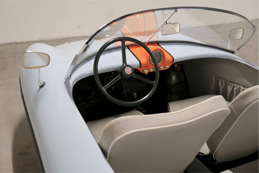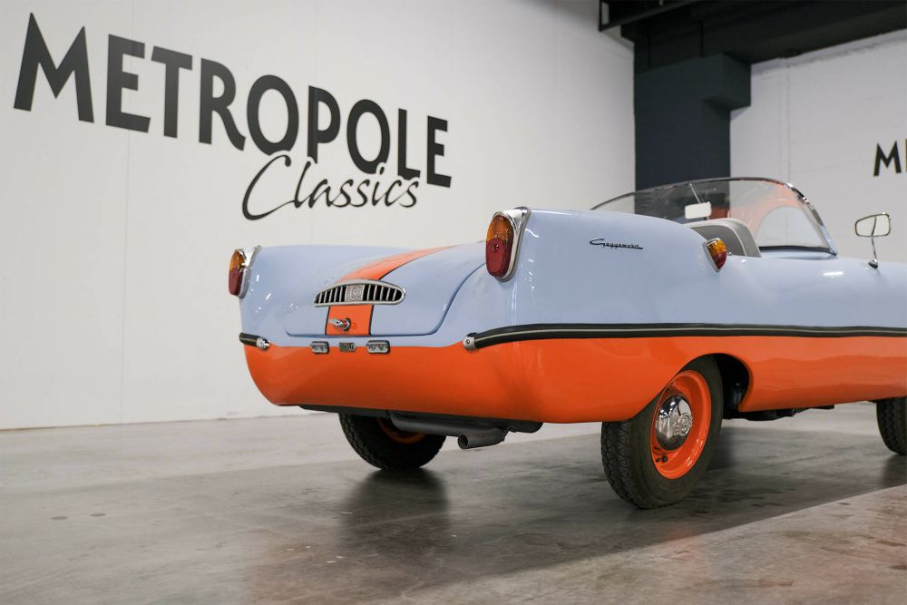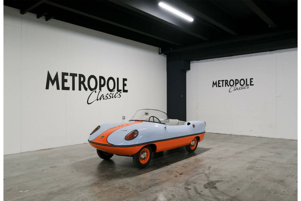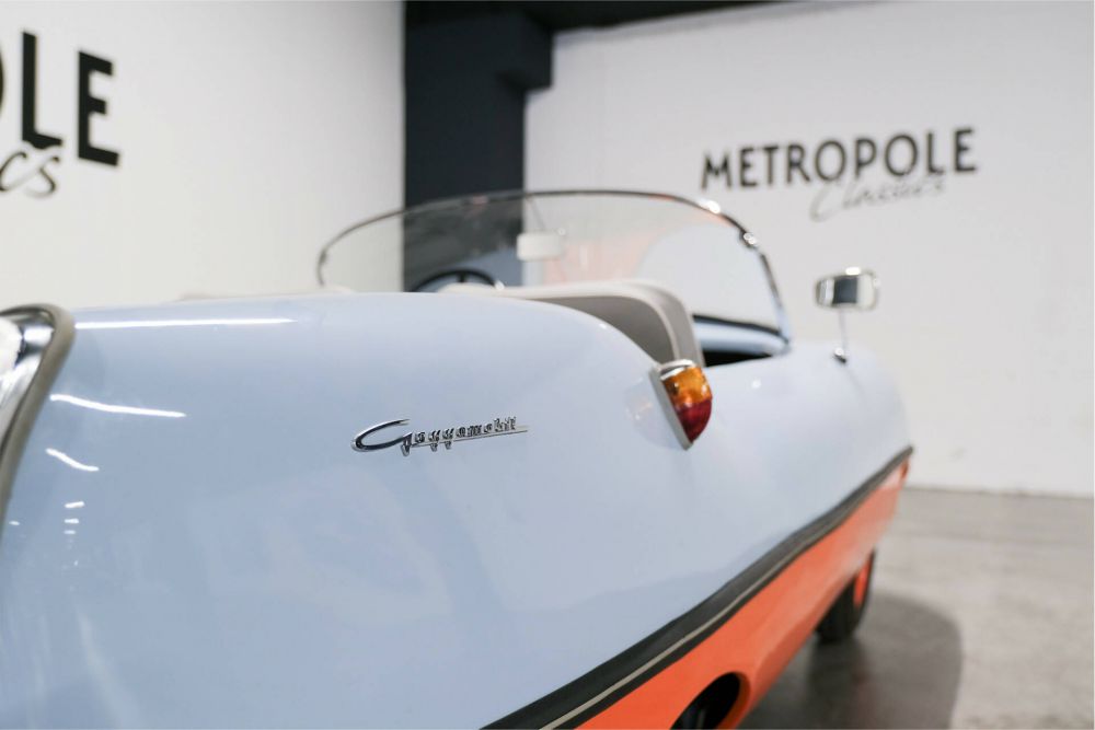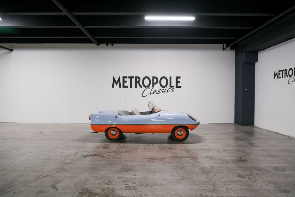 The Dart was based on the chassis and mechanical components of the German Goggomobil microcar, which was a product of Hans Glas GmbH of Dingolfing, in Bavaria, Germany. The car featured an Australian-designed fibreglass two-seater open sports car body without doors, the whole package weighing in at only 345 kg (761 lb). It was powered by a rear-mounted twin-cylinder two-stroke motor available in both 300 cc and 400 cc variants, and had a small luggage compartment built into the nose. The Dart was designed in 1958 and went on sale the following year, with around 700 examples produced up to the time that production ceased in September 1961. This car has a fresh paint, new interieur, and built from RHD to LHD. a great eyecatcher.