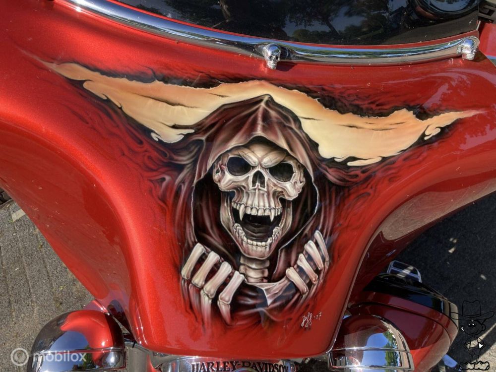 Super dikke en nette Harley Davidson, in super staat, zeer mooi spuitwerk (heeft ca 6K gekost) veel chroom en overal skulls (heeft een godsvermogen gekost) Vance hines uitlaten telefoon houder top koffer radio 1450 cc