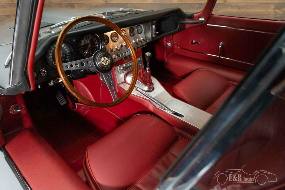 De Jaguar E-Type Series 1 Coupe die we hier te koop aanbieden is werkelijk een van de beste die op dit moment op de markt wordt aangeboden. De restauratie is van een topniveau en dat is er aan af te zien. De E-Type is uitgevoerd in de prachtige kleur Gunmetal Grey wat geweldig combineert met het chroomwerk en de chromen spaakwielen. Het interieur is uitgerust met rood lederen bekleding wat erg mooi afsteekt tegen het Gunmetal Grey lakwerk. Kortom,een prachtige E-Type Series 1 Coupe in geweldige kleurstelling die helemaal klaar is om de weg op te gaan.