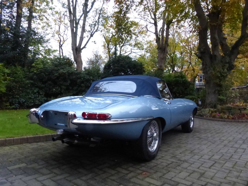 1961 Jaguar E-Type 3.8 Series 1 Roadster Left Hand Drive. Finished on Opalescent Silver Blue with Dark Blue hide interior with matching hood , hood bag and carpets. This is a very significant car in that it is the first non-external bonnet lock flat floor car to leave the production line on 23 August 1961.It has received a total ground up restoration in the Netherlands to a very high standard with many upgrades to the engine including Mahle pistons , Vandervell Bearings ,Renold Chains with a Blueprinted balanced engine plus a crankshaft rear oil seal conversion , high output oil pump and lead free cylinder head conversion . The cooling system has been upgraded high output water pump and Kenlowe fan . The chrome wire wheels are 6.5 inches with 72 spoke wires and 205/70R 15 tyres. The interior is to original spec by Aldridge Trimming with new alloy bucket seats.The car was supplied new to the first owner a lady in Norwalk , Connecticut USA on the 12th September 1961.The condition is out of the box like new having covered less than 100 miles since the rebuild . Currently UK Registered and Tax paid and complete with a before and after detailed photographic file (over 100 pics) of the restoration. Heritage Certificate , US Title document, UK Nova confirmation UK V5C Document and the original toolkit. £SALE PENDING