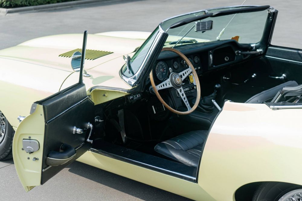 A comprehensive restoration was performed around 2017 during current ownership, and it is apparent at a close inspection that the work was carried out to a high standard. The exterior was re-finished in the yellow color with perfect fitting panels, while the interior was trimmed in black to match. Chrome wire wheels are fitted, trimmed with classic tires.  The 4.2 engine received an overhaul including new clutch and exhaust. We can see new Koni Sport shock absorbers and recent tires as well. Having only traveled around 1.000 miles since.