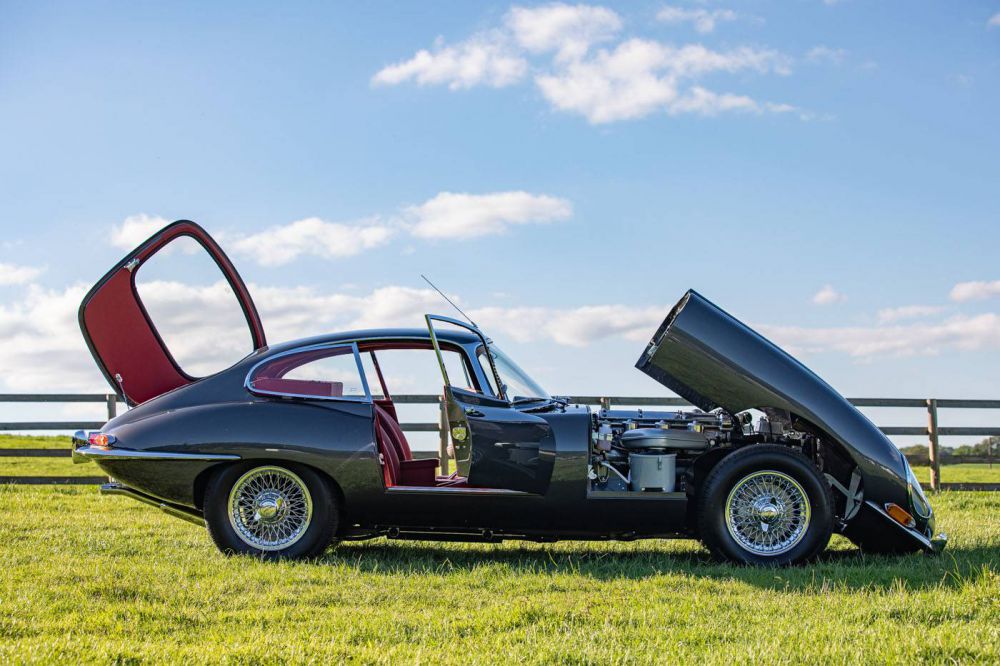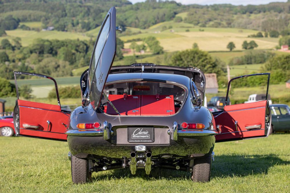 Numbers matching. Opalescent Gunmetal with red interior. Matching luggage set and stainless steel exhaust system - exhilarating sound. One of just 1,583 Right-Hand Drive 4.2L coupes built. The 24,555 miles indicated on the odometer prior restoration making it one of the most original, best preserved examples anywhere. The finest, most meticulously restored Series 1 Jaguar E-Type.