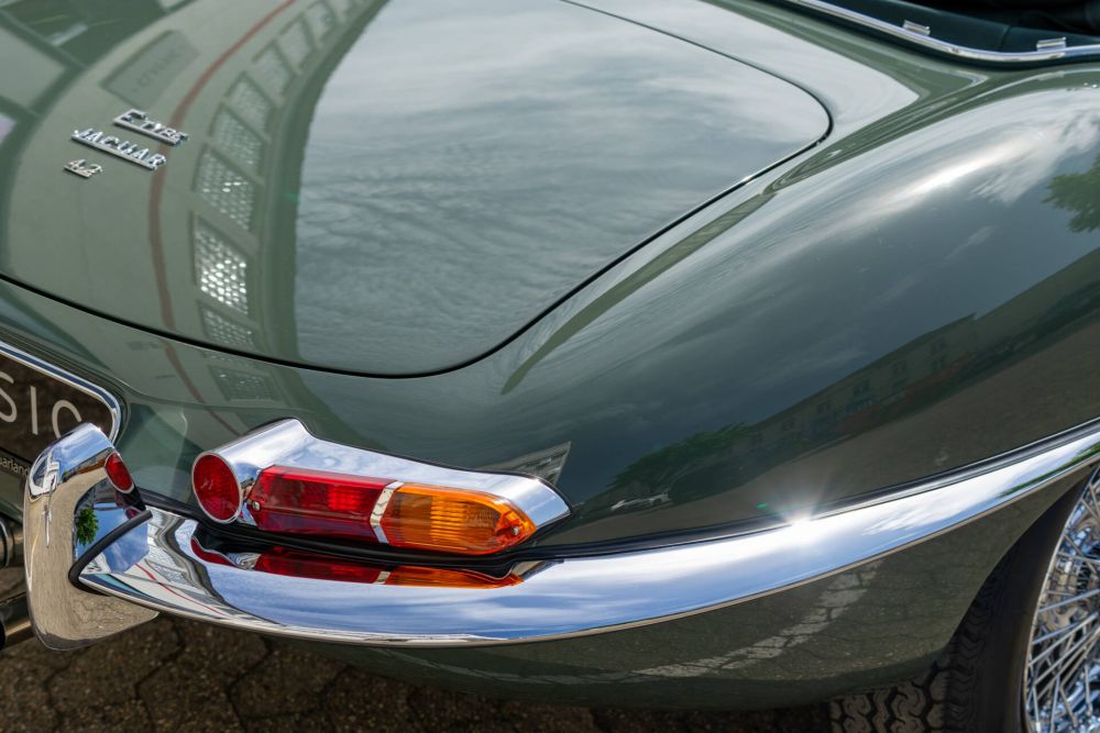 We took every single bolt in our hands, opened up all the cavities, professionally cut out the body panels that could not be repaired and replaced them with new ones. We took great care to work exactly as the Jaguar factory did in 1967. All spot welds are correct, every detail is in its correct place and only tin was used instead of body filler for levelling the surfaces. A technique that only a few specialists still master and use today. The gap dimensions and the surfaces, the flat body panels speak for themselves. Two coats of clear lacquer have been applied and additionally ceramic-sealed.