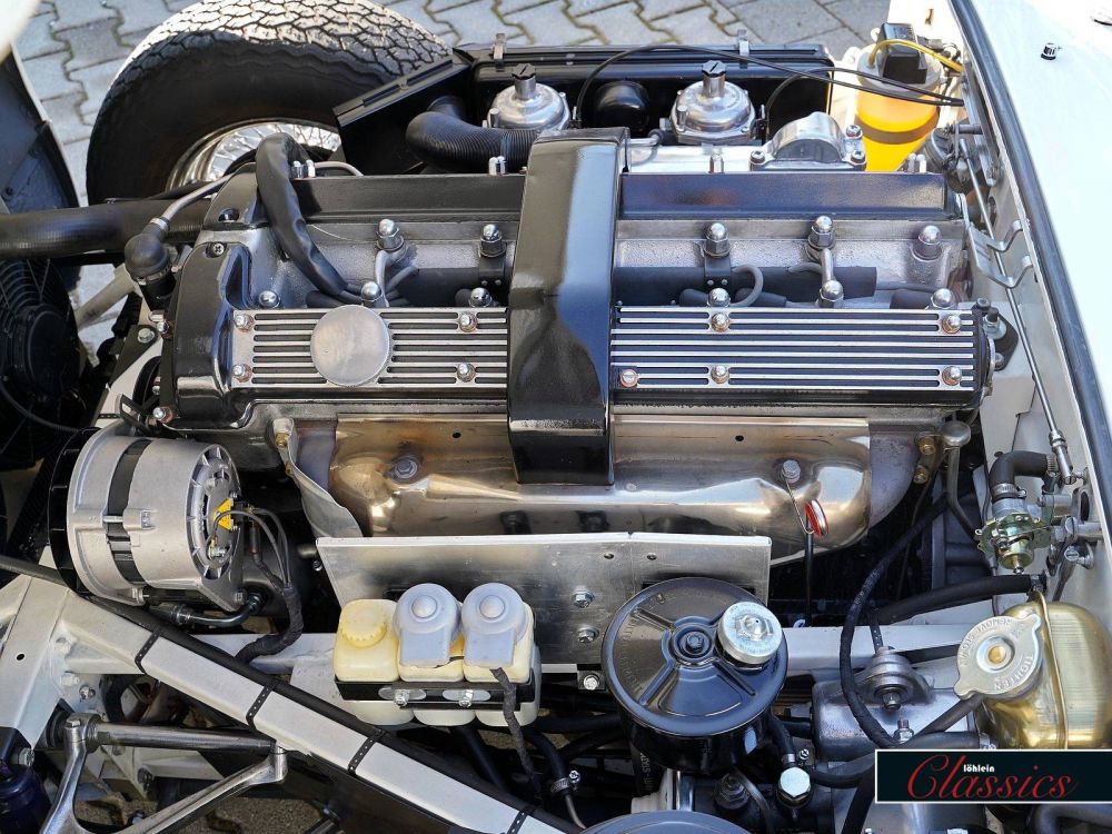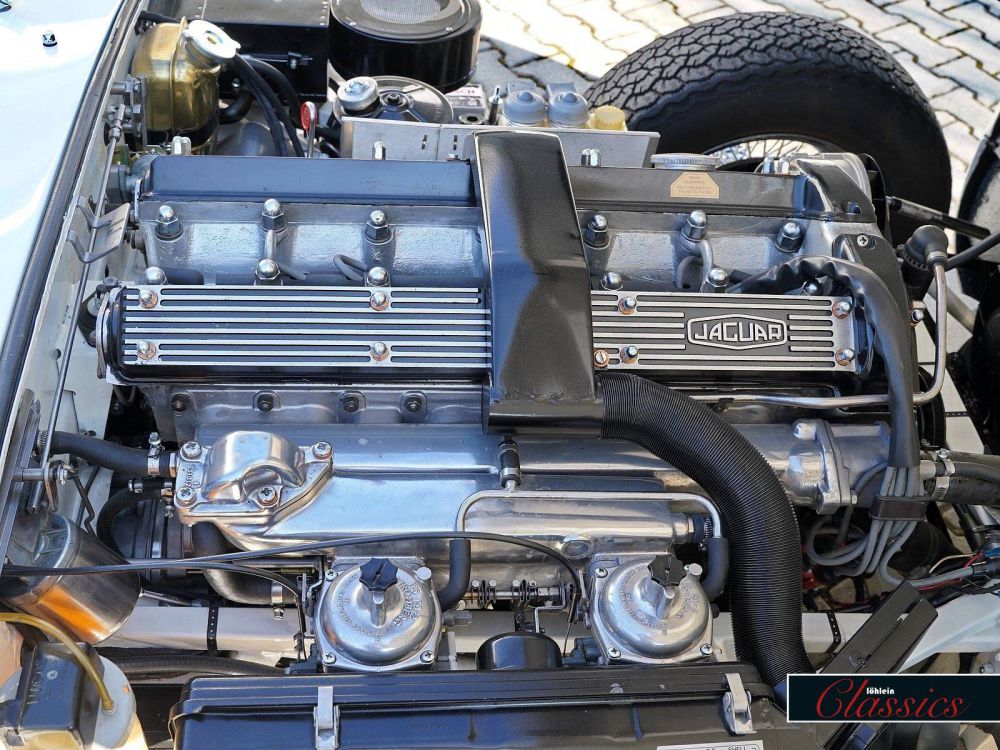 Dieses E-Typ ist einer der wenigen TYP II die ab Werk mit einer TYP III Motorhaube ausgeliefert wurden. Diese Fronthaube zeichnet sich durch eine größere Breite und ein größeres Maul aus. Das Fahrzeug wurde für 200.000,00 EURO von Grund auf neu aufgebaut und seit Ende der Restauration 2022 nur 1500 km gefahren. Das Holzlenkrad wurde extra für dieses Fahrzeug in England neu angefertigt.