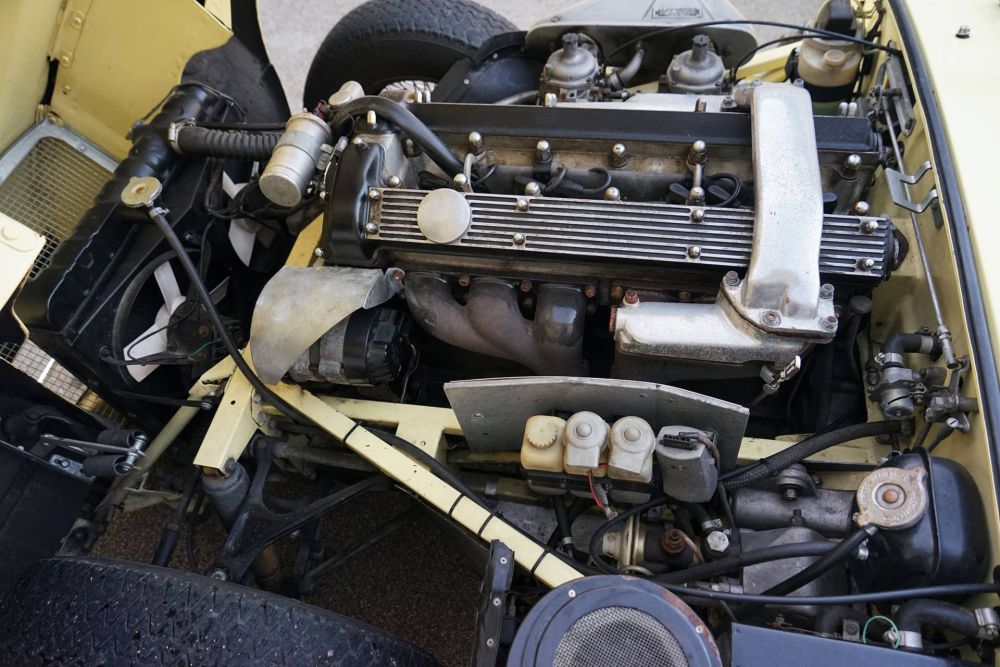 Exterior: Finished in the classic Primrose Yellow, the exterior of this 1968 Jaguar Series 1.5 E-Type showcases a timeless appeal. The paint is in good condition, suitable for a nice driver's car. Chrome parts have been restored and are in excellent shape. Notably, the Series 1.5 exterior retains the side markers and taillights from earlier Series 1 cars but features unique headlights exclusive to this model year.