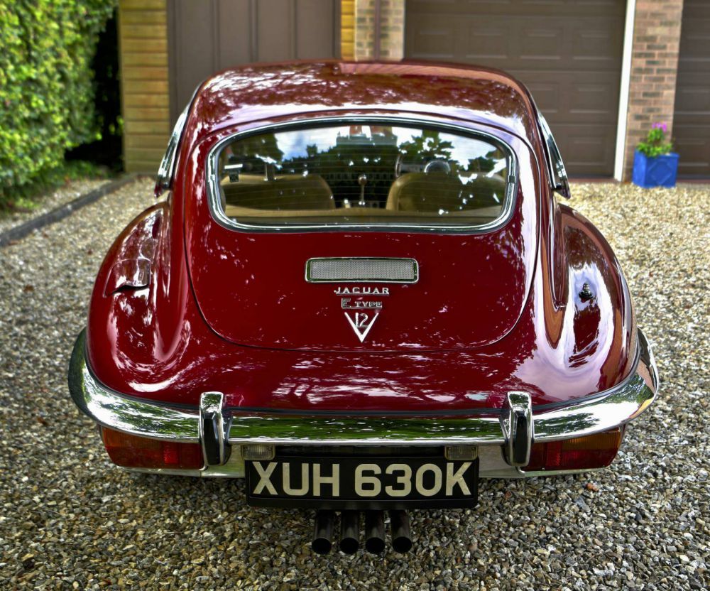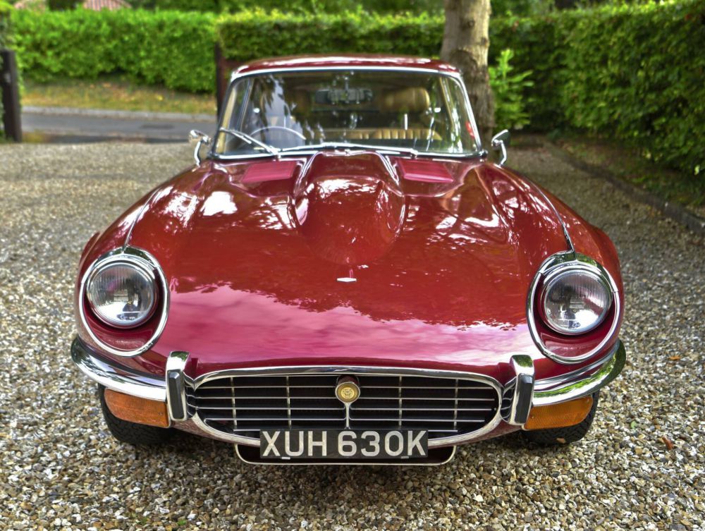 1972 Jaguar E type series 3 Manual V12 Coupe. Vin Number: 1S50921BW Registration Number: KUH630K Recipient of a meticulous 6 year restoration with over £170,000 spent in parts & labor including the cost of the donor car. A full photo book comes with the car documenting details of the restoration & also a massive file of bills for parts & services. The car has had the gear box upgraded to a brand new Tremec 5 speed box making the car very relaxed at speed. Numerous modifications & upgrades have been done to make the car as every day driveable as possible. The front suspension has all been apart & poly bushed. Upgraded torsion bar springs are installed. The car has a high torque starter motor & the radiator is an enlarged high capacity item. Twin separately fused cooling fans are in situ & there is a manual overide switch allowing them to be turned on full time when required. The centre mounted ash tray now opens to reveal two USB charging points. The car was totally stripped & every bit of corrosion cut out & removed. There are pictures of the finished floor plan with all new sills & floors etc prior to being painted. The colour is a Jaguar XJS colour in deep maroon with just a hint of pearlescence to it. It was painted in a total of eight coats including the base white & clear lacquer & the paint is to a very very high standard indeed looking absolutely flawless. Appearing maroon in shade, the colour comes to life & is much lighter looking in direct sunlight. The exchange unit V12 engine is in itself a work of art with powder coated rocker covers & inlet manifolds giving the car a very very smart look under the bonnet. The car is running electronic ignition & the engine comes with a full dyno graph & compression test. The owner has gone to great lengths to get the car running right & it pulls away seamlessly in top gear from any speed. The brakes have also been stripped & rebuilt to as new like the rest of the car. The chrome pressed wheels have been re-chromed & shod with new tyres. An additional set of pressed wheels come with the car. Exterior brightwork such as the bumpers have also been re-chromed. An old style new radio is also fitted along with the requisite speakers etc. A centre console mounted switch puts the electric ariel up & down. The interior is fawn leather along with matching headlining & maroon over mats to the floor. Burr walnut has been inserted to the centre of the dash & also along the top of the centre console. Modern inertia type seat belts were also installed as was a lot of sound deadening insulation to make the car as quiet as possible. A slightly smaller then stock motalita steering wheel completes the ensemble & is of course finger tip light in best Jaguar V12 fashion. The current 4th owner from new has covered some 3000 or so miles in the car & has won a variety of prizes at car shows he has attended. New projects beckon so the car is now to be sold. Make no mistake: this car is like a brand new showroom fresh car & is being sold for a fraction of what has been invested in it. The whole idea of this car rather then sticking to originality was to build it as every day useable & modern as possible & without doubt that remit has been perfectly achieved. It is a very very impressive car.