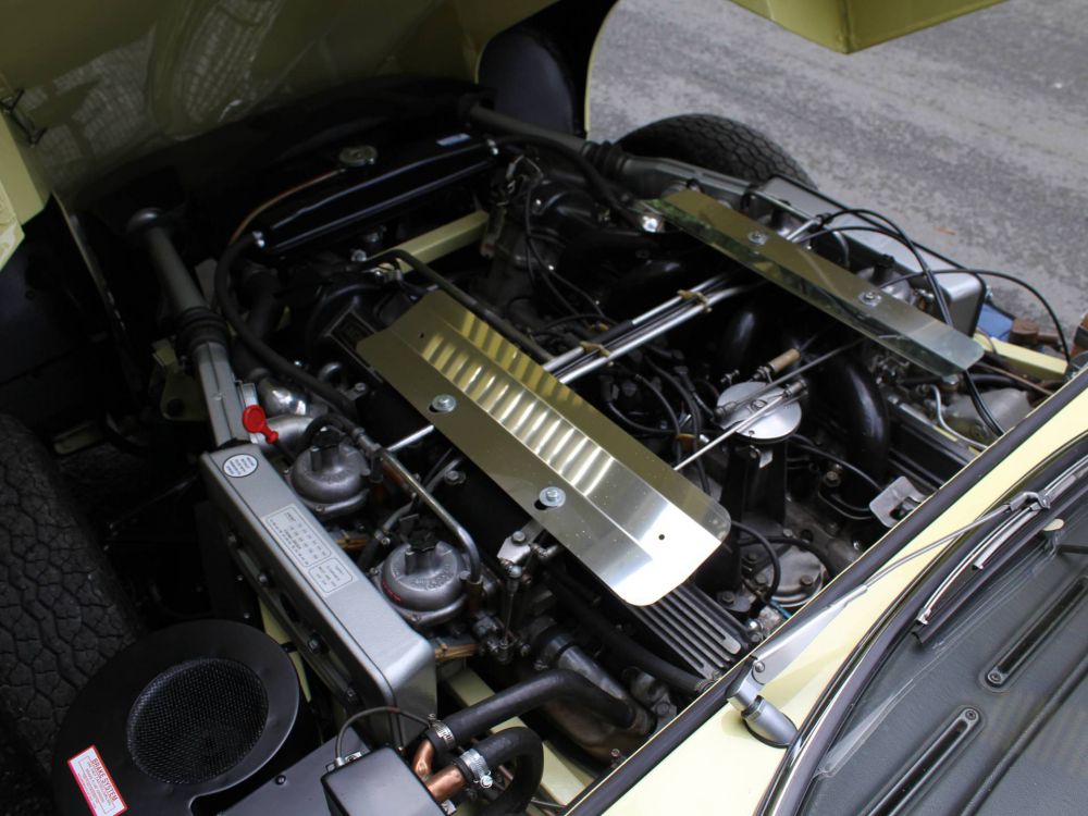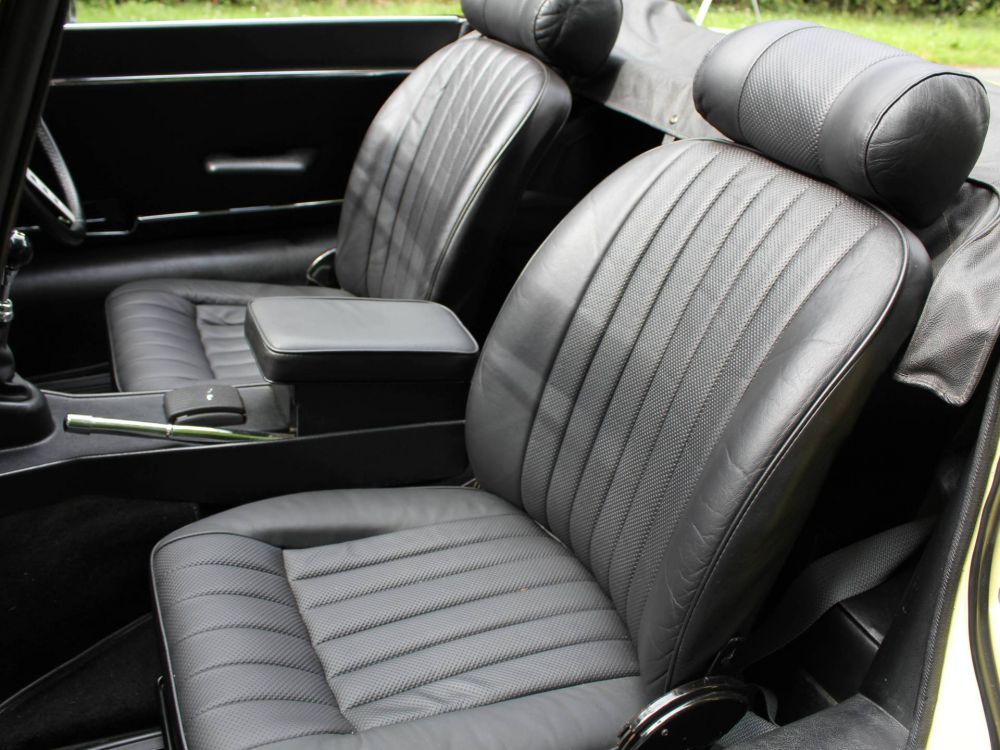 At 38319 miles in 2019 and cosmetically original condition, the last owner took the V12 off the road to carry out a cosmetic and detailing refurbishment program due to the aged, faded but original paintwork. The vehicle was then stripped of all its interior back to the bare floors that showed zero corrosion, and the exterior removed of all chrome, trims, seals, original vinyl hood and all glass. The bonnet, doors and boot lid were then removed, and the underside of the bonnet stripped back removing all factory stoneguard protection to the wheel arches. The stoneguard protection to the underside of the boot floor was removed, and with only very light surface corrosion found on the bodyshell that was dealt with, the bodyshell and panels were then prepared for a top class re-paint in the original Pale Primrose. The bonnet, doors and boot were then re-fitted with new hinges, rubber trims, seals, nuts, bolts and washers and the car built up with freshly re-chromed bumpers, grille and handles etc. Newly re-painted and stoneguarded splash panels with new body fittings were re-fitted and period number plates fitted, along with the excellent and original vinyl hood. Extensive engine bay detailing included newly re-painted/refurbished ancillary fittings such as heater box, air filter housings, and new nuts, bolts, washers, jubilee clips were replaced together with new hoses and wiring where necessary. The program of work was completed by 2021, placing the car into a show standard condition. Photos are also on file confirming the exceptional original condition during the strip down stage.
