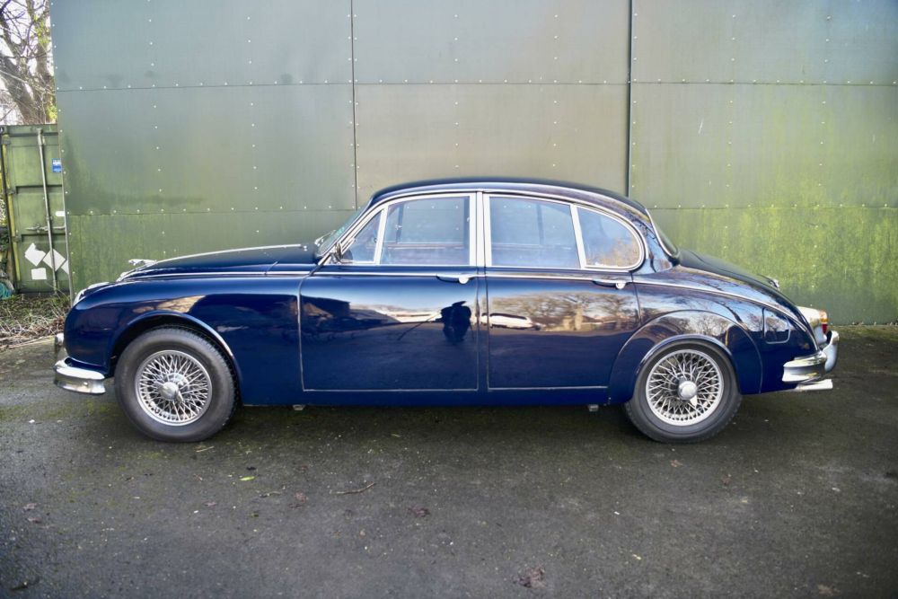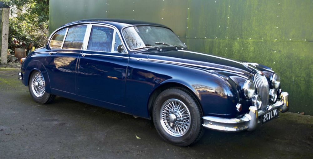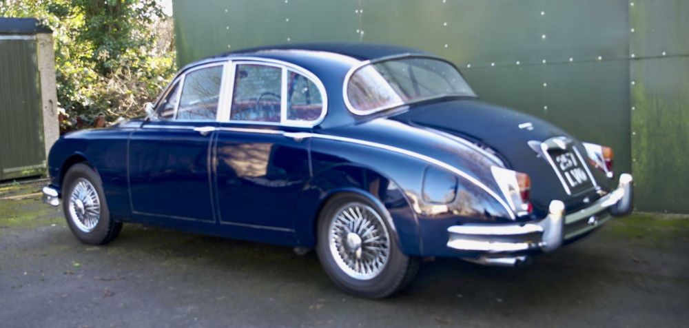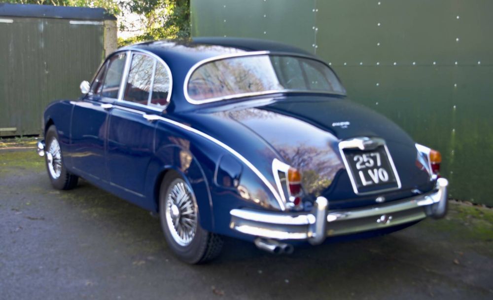 1961 Jaguar Mark 2 3.4 Litre Manual Chassis Number: 157758DN Registration Number: 257LVO Ordered new by Barclays bank in London & delivered to them at Lombard St in the city. This Jaguar comes to us via & estate sale & lacks full restoration invoices although this has clearly been done as the car is in overall beautiful condition. Exterior paint is indigo blue & in very very nice order thoughout. To the interior is brand new red leather & matching carpets to all the seating surfaces & floor. Pleasingly the original finish to the dash board has been retained. The car is also equipped with fold out occasional tables to the rear. The car is also in excellent condition underneath. Other improvements include an alternator conversion, electronic ignition and electric adjustable power steering. Forming part of a small collection of british cars belonging to an ex motor main dealer family, this is a well above average condition car that has clearly had a symapthetic restoration done to it without chroming & polishing it to death & frankly is all the better for it. It drives beautifully & has a serious turn of speed all delivered in a civilized & typically Jaguar manner. The overdrive clicks in upon command making it very relaxed to drive, even at triple digit speeds should you venture as far as the autobahn. Indicated miles are 77,000 with just a few hundred miles covered each year in the last few years. The car sits on four chrome wire wheels fitted with knock off hubs. Recent tyres are fitted on all four corners. The engine bay is tidy with a light patina of use. The oil pressure is excellent & the engine pulls really well with ample power & a typical Jaguar growl from the 3.4 litre twin cam engine when pushed hard. All in all a lovely car to drive & coming from a collection whom's policy was to look after their cars without regard to cost & have only cars in top condition, this is a good opportunity to acquire an iconic 1960's Jaguar with nothing whatsoever needing doing to it other then driving it.