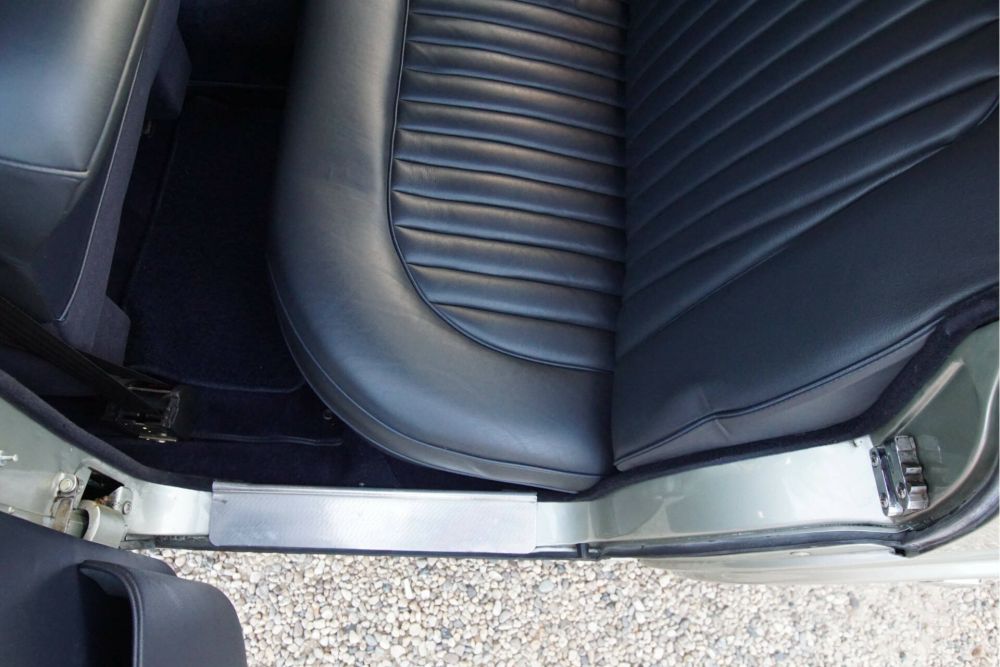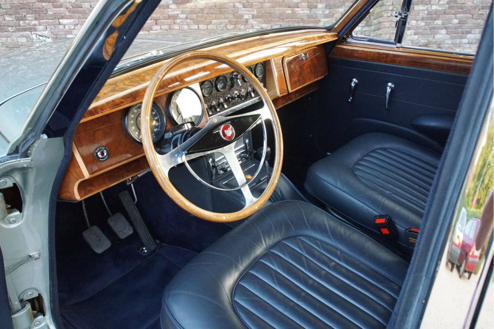 What gives the whole extra cachet is the beautiful dark interior that fits in wonderfully with the exterior colour. The leather has a beautiful patina, so the car does not have the appearance of a freshly restored example. At the same time, the entire interior is in beautiful condition, with defects or damage conspicuous by their absence. As can be seen, the woodwork has also been varnished very expertly (eight times) and therefore looks new.