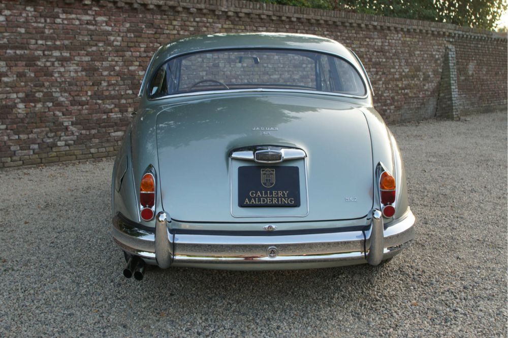 The Mk II has already been beautifully restored. A professional restoration in which no expense was spared to achieve the ultimate result. The car was painted in a unique colour of light green that looks truly fantastic. Rarely have we seen a Mk II that stands out as much as this example. The light green paint contrasts beautifully with the chrome in concours condition, such as bumpers, grille, lighting parts and of course the wire wheels.