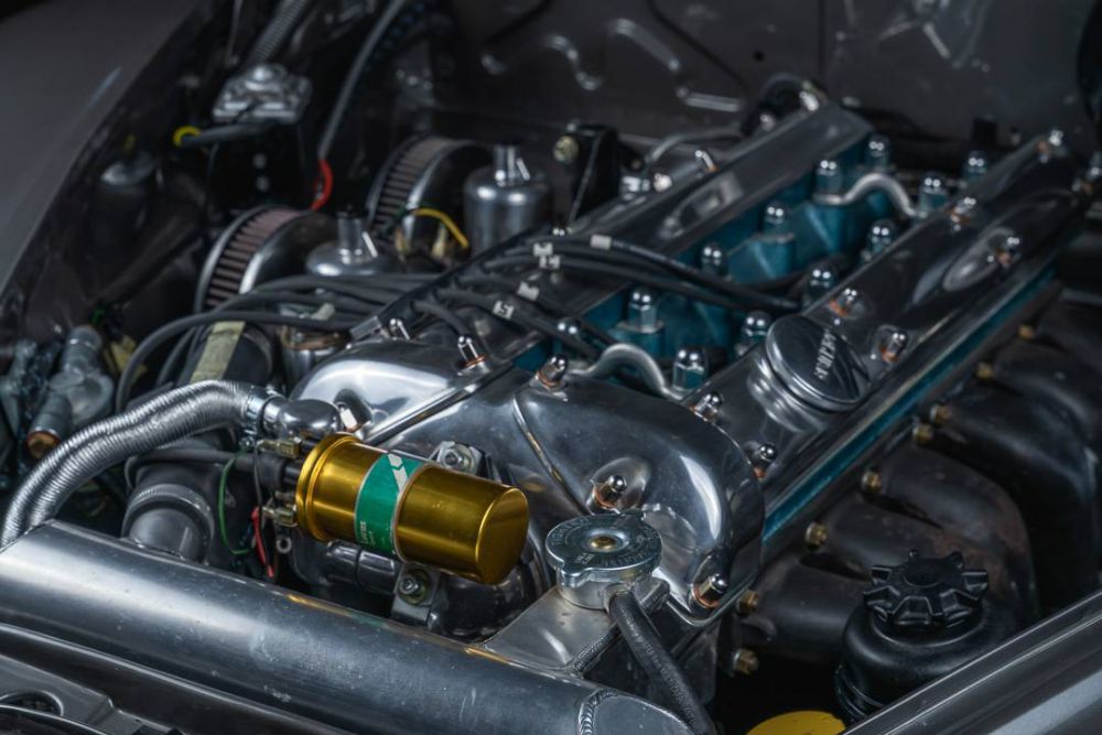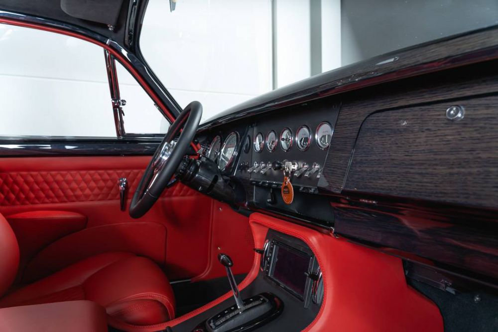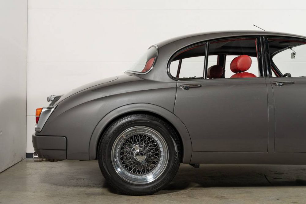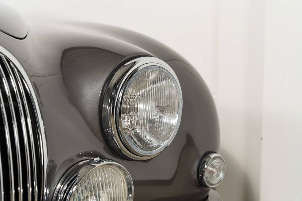 When the Mark 2 hit the market in 1959, it was considered the first true sports saloon." Now, half a century later, you can still see that same MK2 in this car. But faster, more forgiving, with power steering and power brakes. It still has a genuine 6-cylinder engine, but lighter and completely overhauled. Everything feels tailored, adapted, but in a sympathetic way. Take, for example, the dashboard: still the same architecture, but now crafted from beautiful thick dark oak. A new automatic transmission, electrically adjustable seats with seat heating, and a modern multimedia system. Even the underbody and rear axle of the car have been fully restored and finished with anti-stone chip protection and new paint. Everything that moves, seals, or allows fluids to pass through has been renewed. The list of professional modifications seems endless.