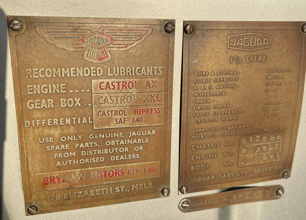 This fine 3½ litre model has a certified build date of 24 August 1948 and was shipped to Australian Jaguar distributor, Brylaw Motors Pty Ltd, in Melbourne in September of that year. It was in Australia until 1993, when the vehicle was re-registered in New Zealand. Here it remained until around October 2000 (a NZ vehicle inspection report shows a recorded mileage of 79,518 miles at this point). A comprehensive, specialist restoration - body & engine rebuild - took place between 2002 and 2005 in the Netherlands, and the car was then imported and re-registered in the UK in 2008. Its most recent travels saw it with a new owner in Jersey in May 2010.