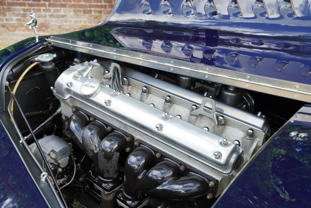 On a fully restored MK VIII chassis, a one-off body has been built that embodies the elegance and refinement of the 1930s. The frame, expertly crafted from ash wood, provides a solid foundation for the beautiful aluminum bodywork. Every detail projects craftsmanship and precision, from the flowing lines to the carefully shaped panels. It is a masterpiece of craftsmanship and design.